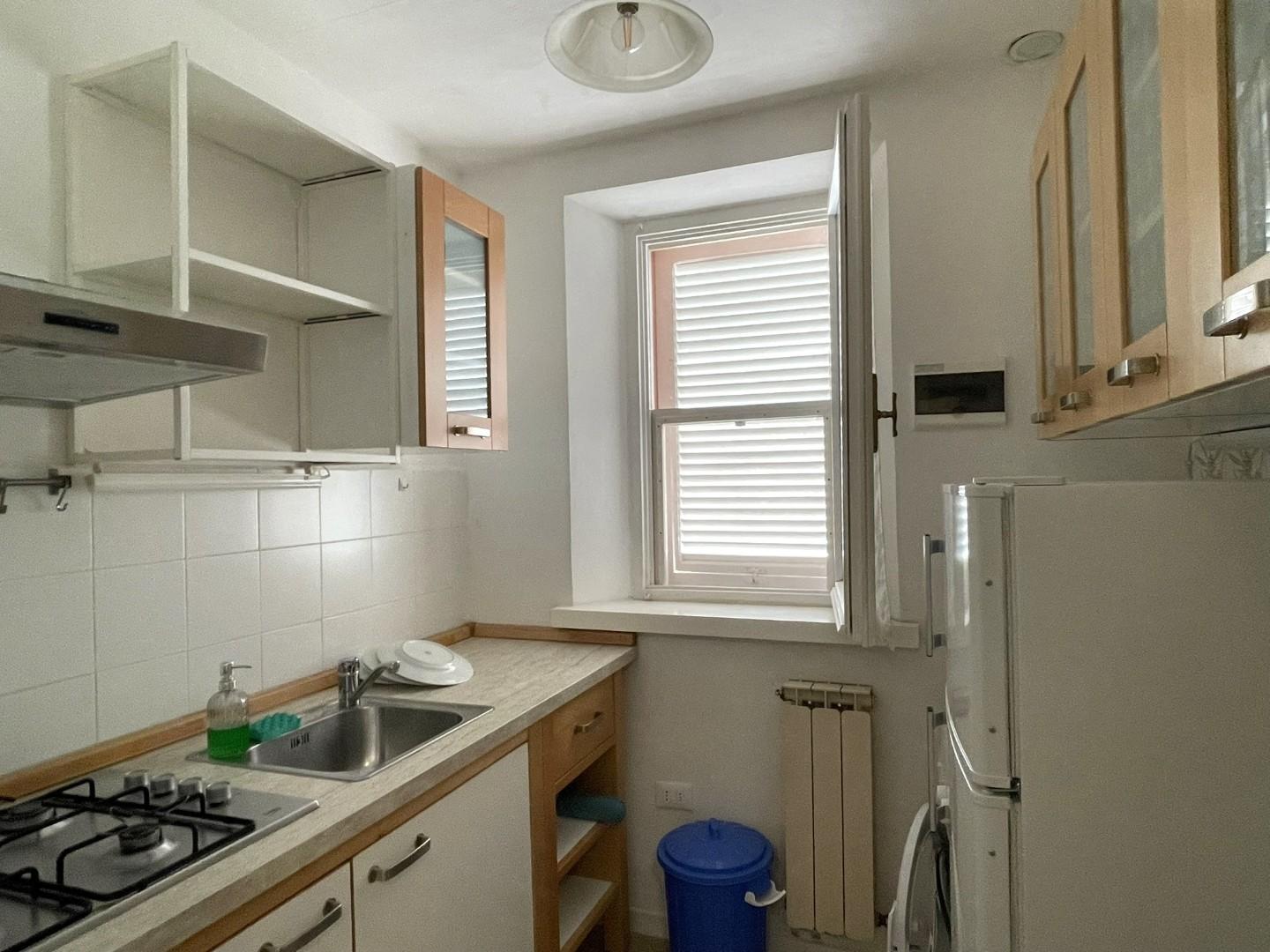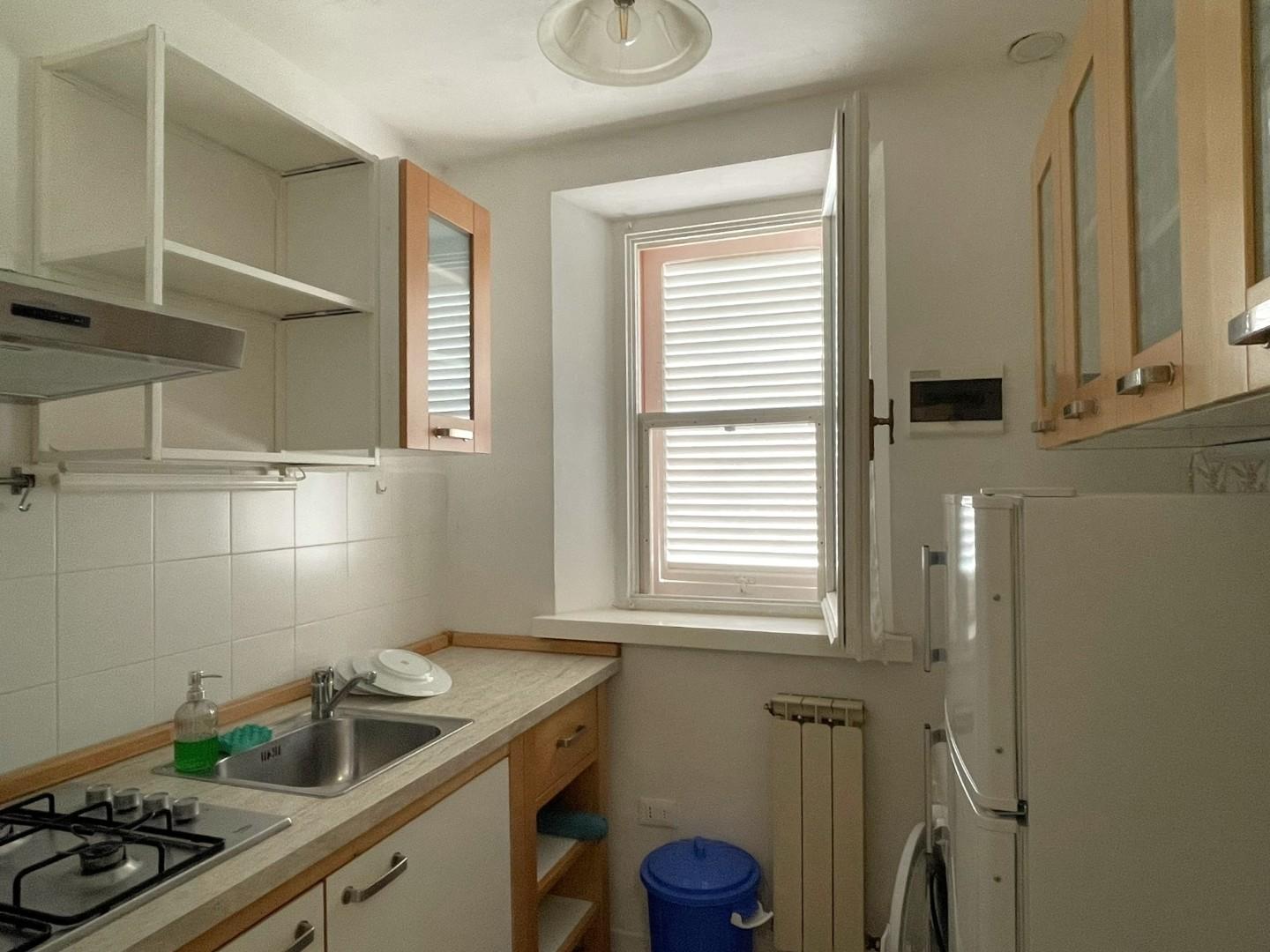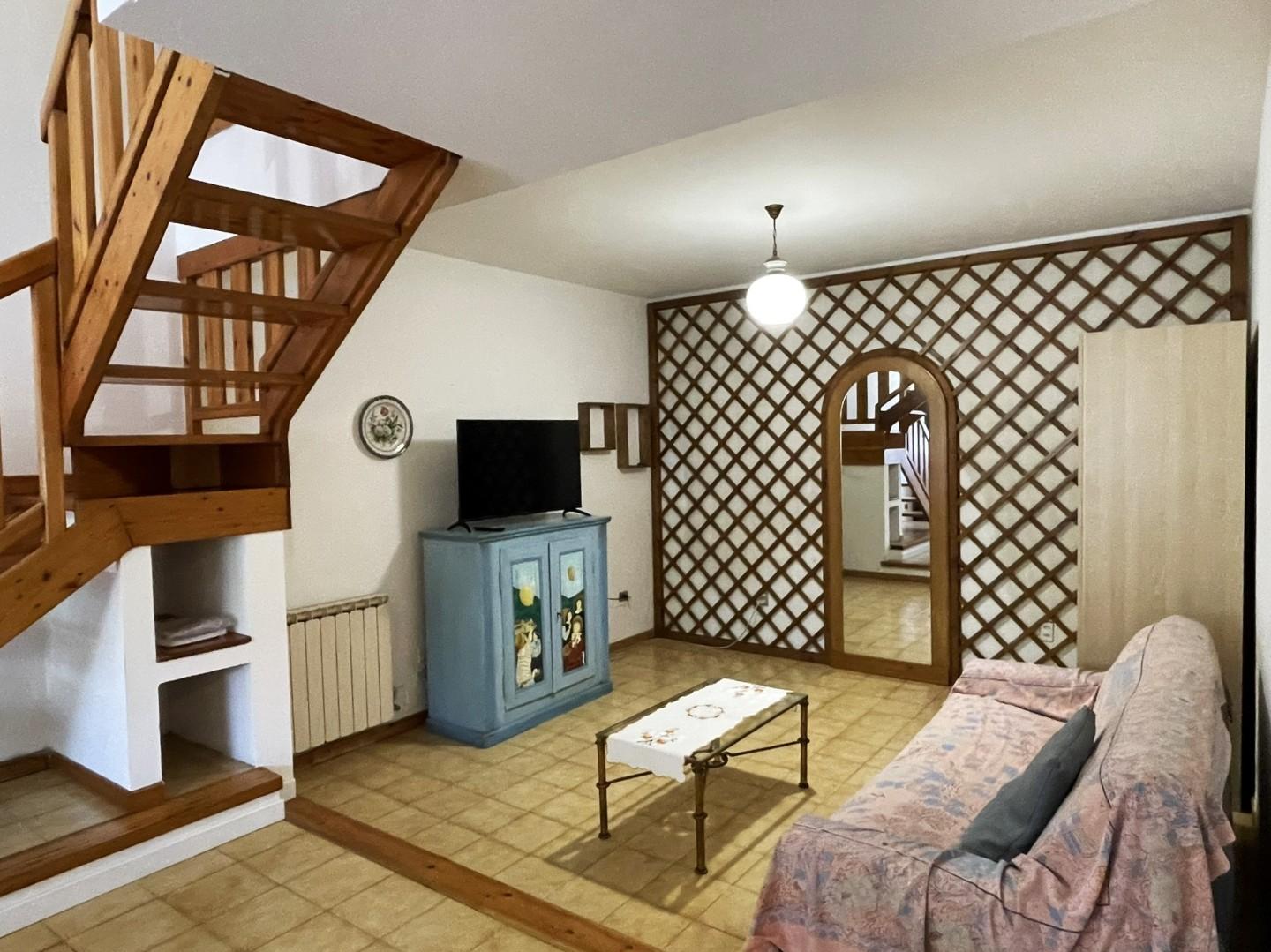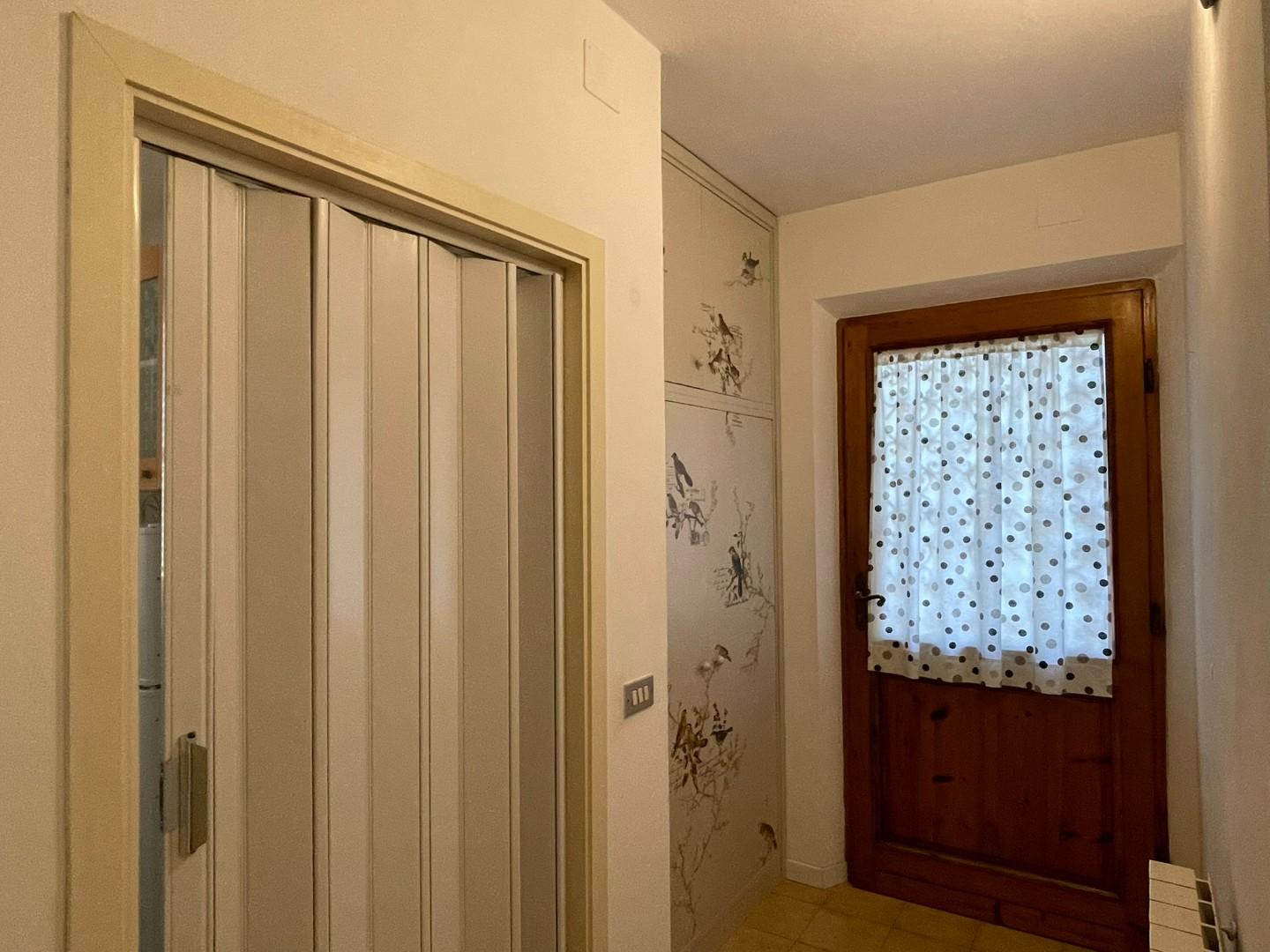 L'appartamento, completamente arredato, si compone di un ingresso che conduce al cucinotto, al bagno e alla zona giorno suddivisa in sala da pranzo (dotata di stufa a pellet) e salotto.