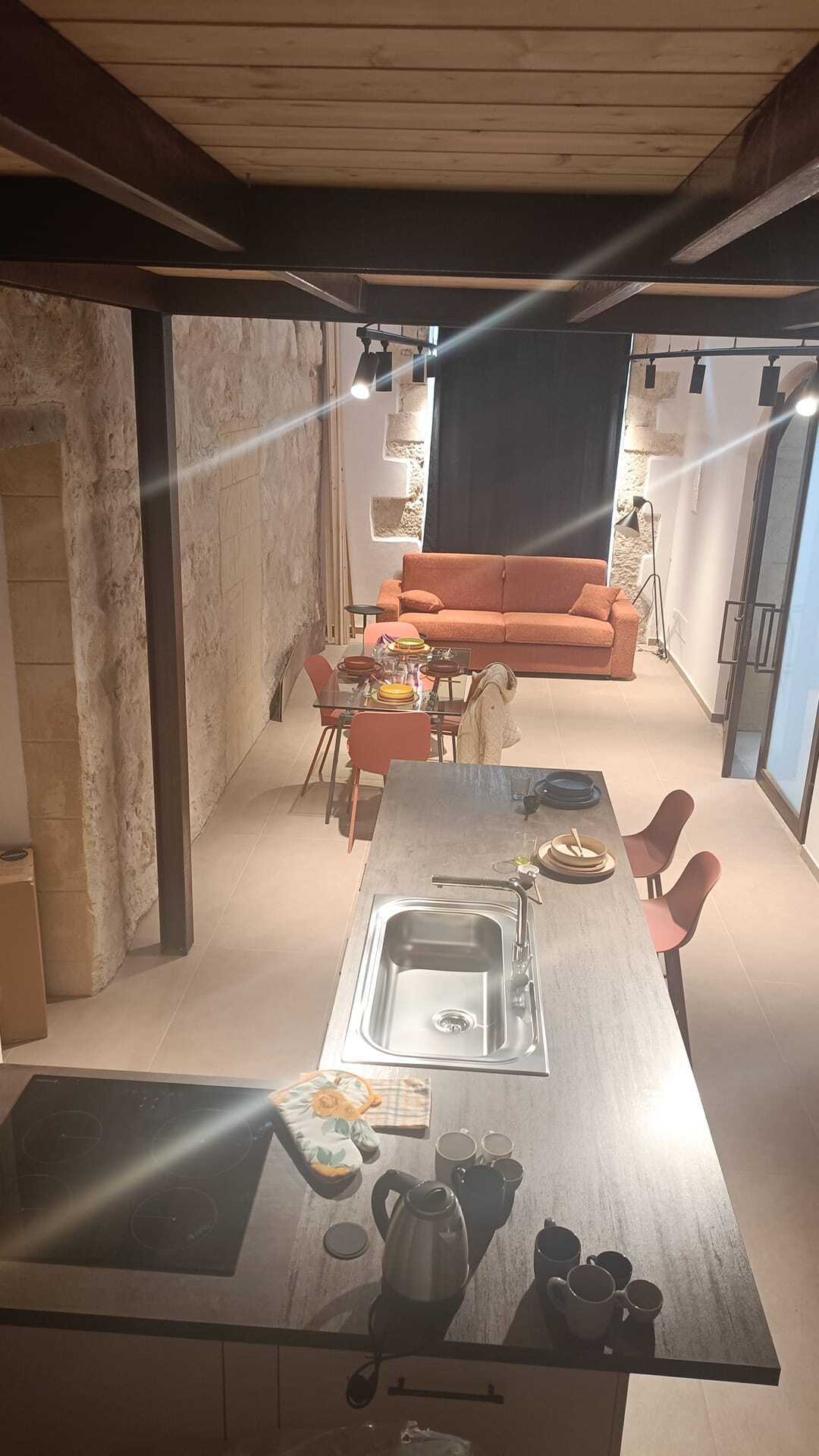 ADIACENZE CORSO UMBERTO: Affittasi appartamento arredato, ristrutturato al piano terra con soppalco, libera da subito, composto internamente da ingresso soggiorno, sala pranzo, cucina, bagno ripostiglio nel soppalco camera da letto con bagno.