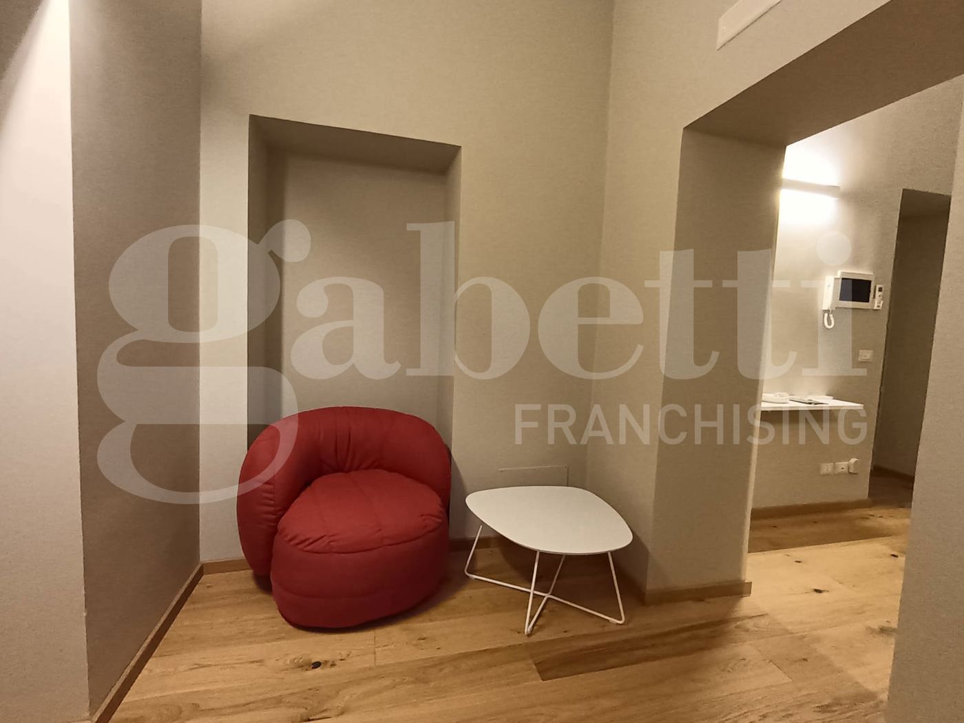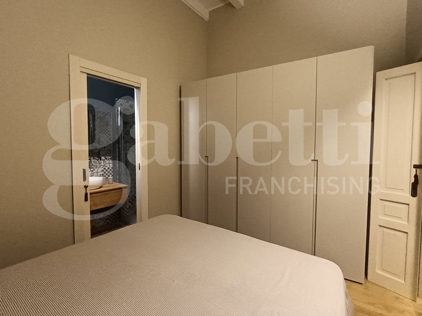 Il piccolo corridoio conduce alla camera matrimoniale (con ampio armadio e letto contenitore)e al bagno in camera (dotato di doccia ampia e finestra). Ogni stanza ha accessoalla verandina,con grata metallica, ed fornita di pompa di calore.