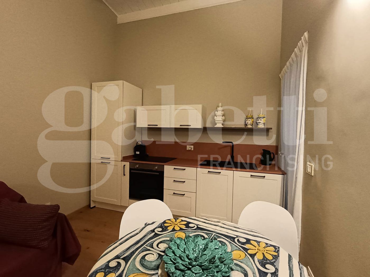 La casa ha ingresso sulla cucina abitabile con piano induzione,frigorifero, forno e lavatrice incassata.