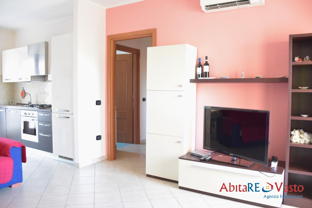 Vasto - Via Costa Contina | Residence ITACA\nAll'interno di un elegante residence di recente costruzione, completamente recintato, con piscina e ampio giardino condominiale, proponiamo in locazione transitoria un moderno appartamento arredato, ideale per chi cerca comfort, tranquillità e una vista mozzafiato sul golfo di Vasto Marina.\nPrimo piano con ascensore, composto da:\nAmpia zona giorno luminosa con angolo cottura;\nCamera da letto matrimoniale;\nDue bagni finestrati, con box doccia e vasca;\nDue terrazzini + un ampio terrazzo vivibile con vista panoramica.\nL'immobile, in ottimo stato e ben rifinito, è termicamente autonomo e completo di: Climatizzatori, Lavatrice e lavastoviglie, Zanzariere, TV, Posto auto all'interno dell'area condominiale\n\nDisponibile esclusivamente da settembre a maggio.\nContratto transitorio riservato a clientela referenziata, con contratto di lavoro e buste paga dimostrabili.\n\nIdeale per 1 persona o una coppia.\n\nContattaci ora per fissare una visita o ricevere maggiori informazioni! - Maggiori Dettagli: Climatizzato, Vista Mare, Lavastoviglie, Rete ADSL, Porta blindata, Doppio servizio Contatta l'inserzionista