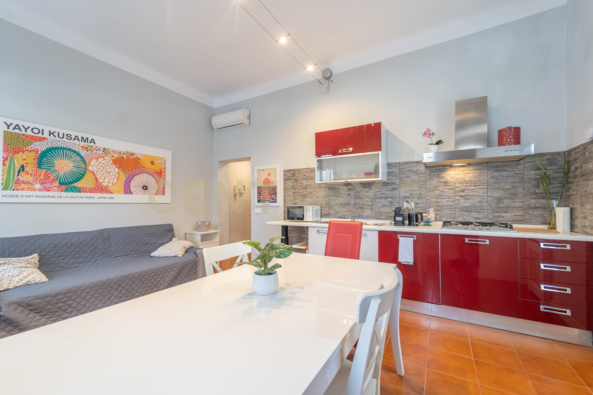 Lappartamento, luminoso e ben distribuito, è composto da: ingresso, ampio soggiorno con cucina attrezzata di tutti i comfort, corridoio, camera da letto matrimoniale, bagno finestrato con doccia, comodi soppalchi che garantiscono spazio extra.