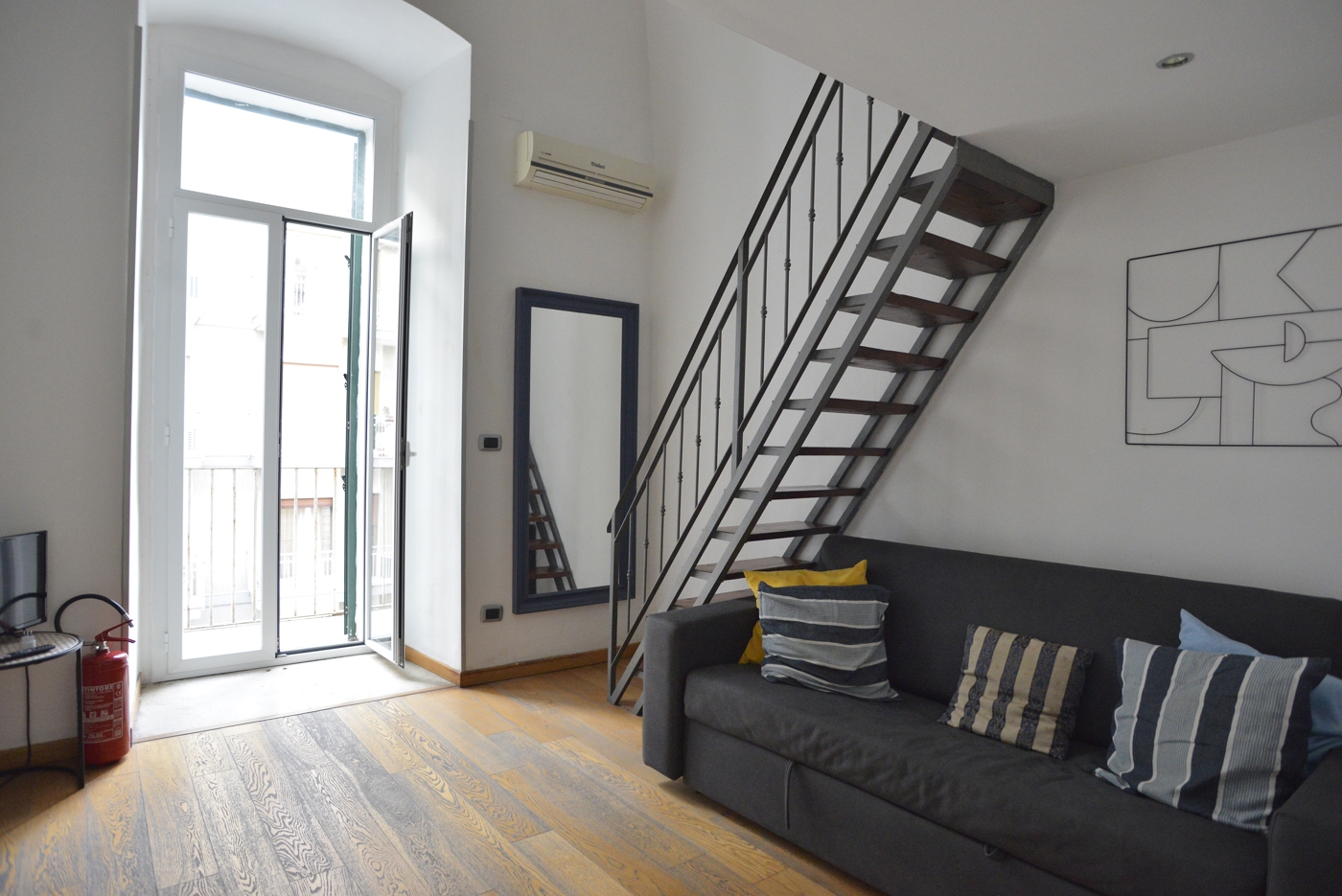 Lappartamento, posto al secondo piano, luminoso ed composto dal grazioso soggiorno, con angolo cottura a vista, affacciato con un balcone su Via Principe Amedeo; separato da un bellarco, il salotto, anchesso affacciato con un balcone su Via Principe Amedeo; la zona notte posta sul soppalco; il bagno ampio e comodo; la piccola zona lavanderia molto funzionale.