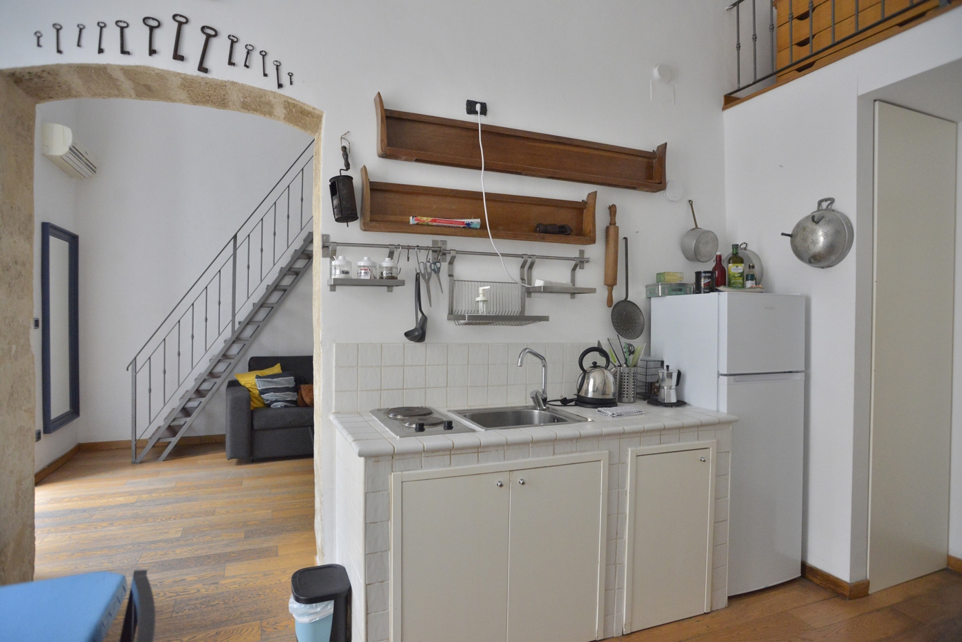 Lappartamento, posto al secondo piano, luminoso ed composto dal grazioso soggiorno, con angolo cottura a vista, affacciato con un balcone su Via Principe Amedeo; separato da un bellarco, il salotto, anchesso affacciato con un balcone su Via Principe Amedeo; la zona notte posta sul soppalco; il bagno ampio e comodo; la piccola zona lavanderia molto funzionale.