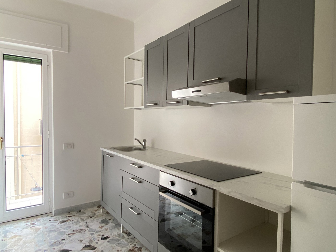 Affacciandosi dal balcone esterno del nostro appartamento, la vista spazia su tutta Via Carducci, con uno scorcio di mare allorizzonte.