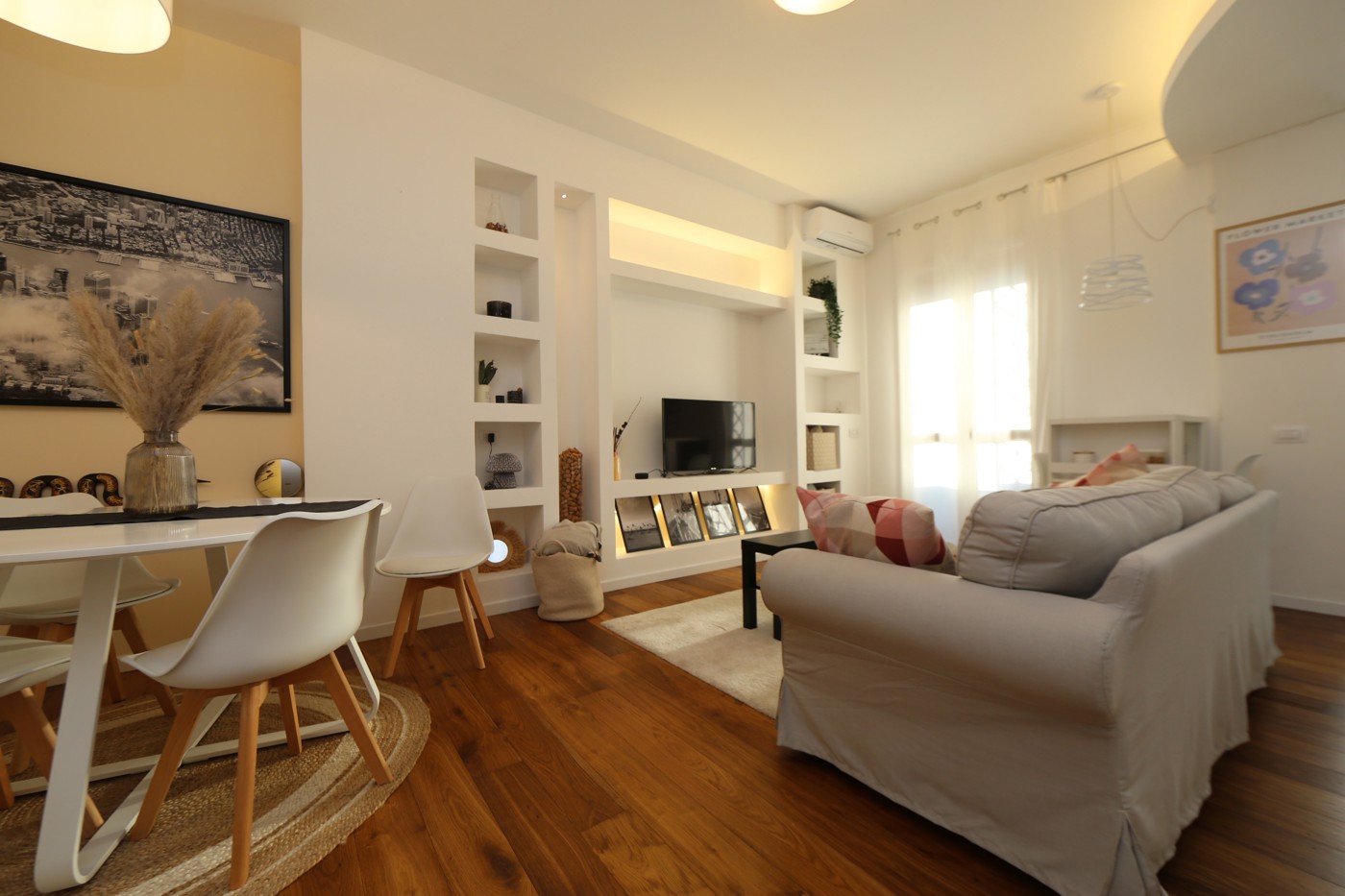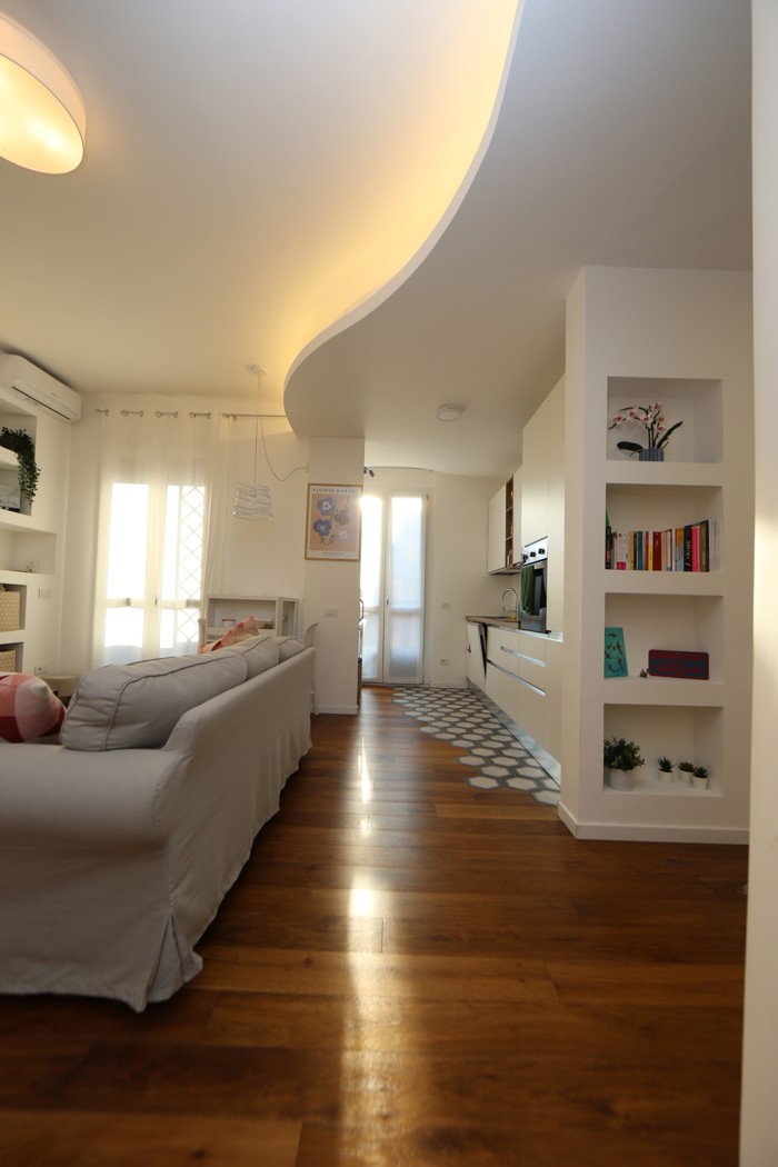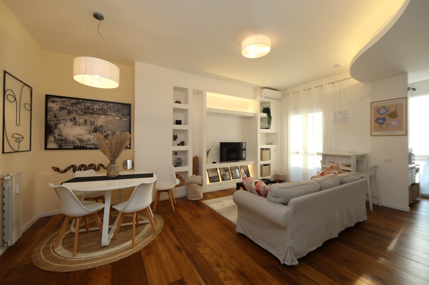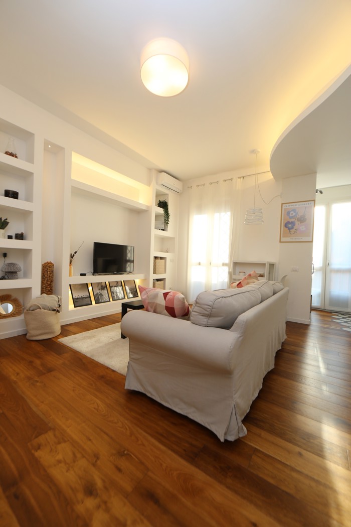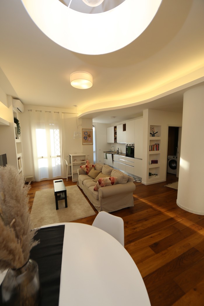 La distribuzione degli spazi prevede l'ingresso sulla zona giorno open space, bagno con ampia doccia e camera da letto dalla quale si raggiunge il terrazzo.