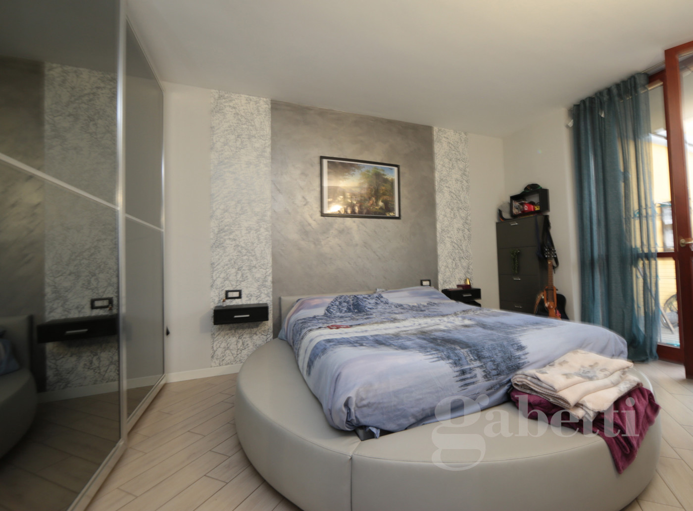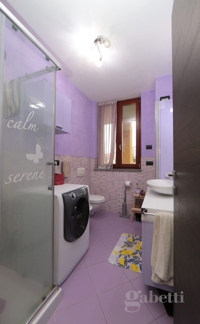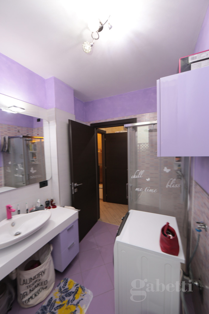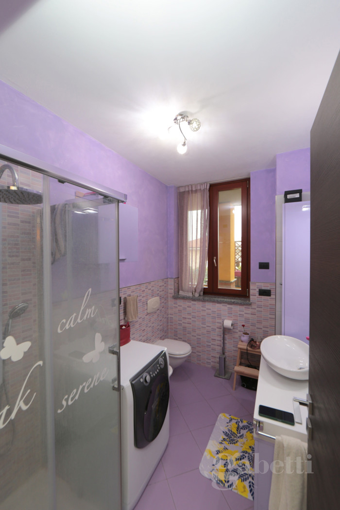 Dal disimpegno si accede alla zona notte che ospita il bagno con doccia e la camera matrimoniale, accogliente e ben organizzata.