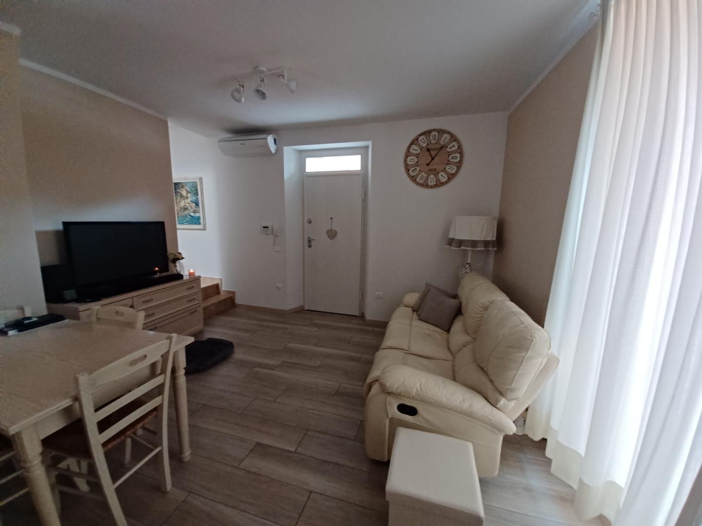 Si affitta A SOLI REFERENZIATI delizioso terratetto completamente arredato e recentemente ristrutturato a nuovo, libero su tre lati composto da soggiorno-cucina con piccola resede; al piano primo ripostiglio, bagno e camera matrimoniale con guardaroba, al piano interrato piccolo locale uso sgombero da poter adibire anche a tavernetta.
