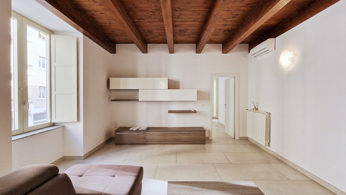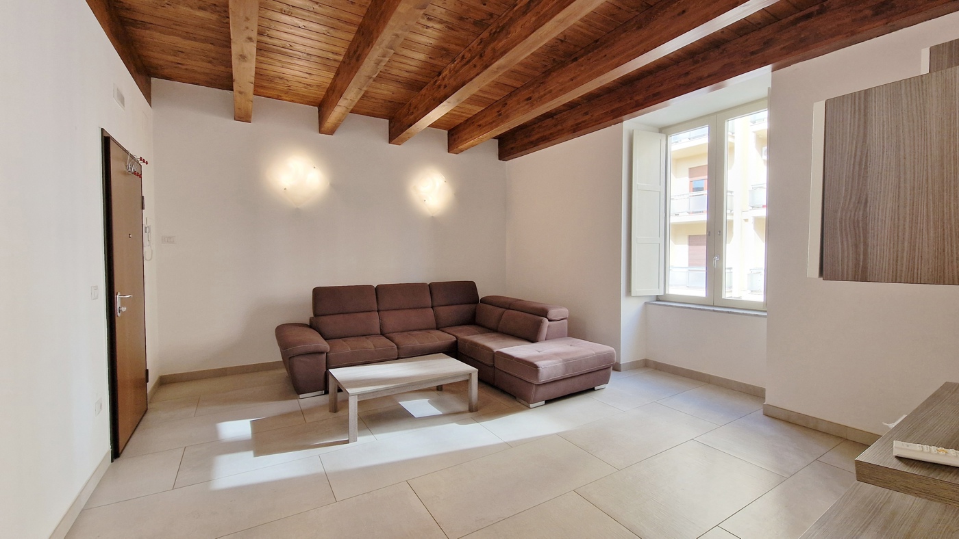 Affascinante appartamento arredato di 75 mq posto al primo piano e composto da salone, ampia cucina, camera matrimoniale con cabina armadio, bagno e due balconi di cui uno con affaccio su via Alois.