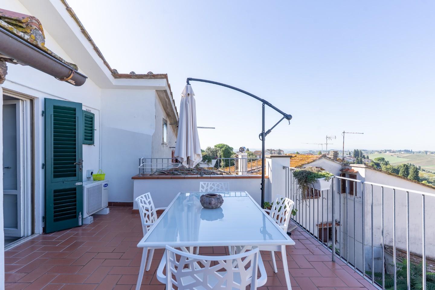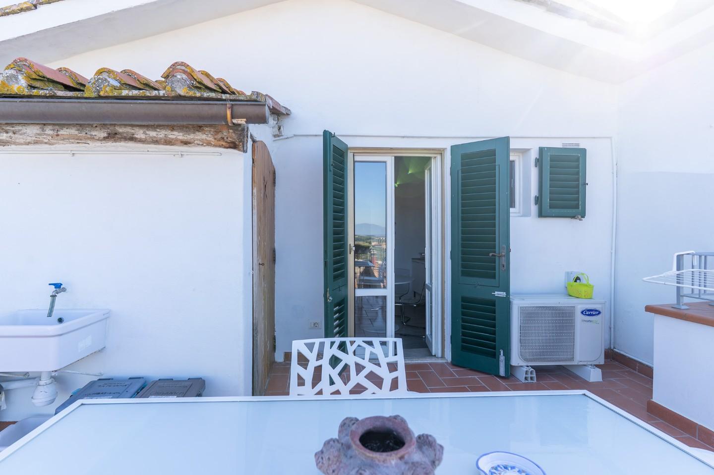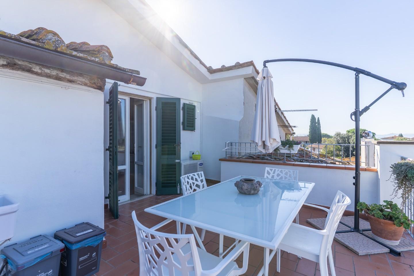 Lappartamento è impreziosito da una favolosa terrazza abitabile, ideale per rilassarsi e godere a pieno della bella stagione.