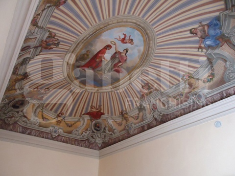 Balcone di ingresso con ripostiglio, sala con angolo cottura diviso, disimpegno, AMPISSIMA MATRIMONIALE (mq 33) AFFRESCATA e bagno.