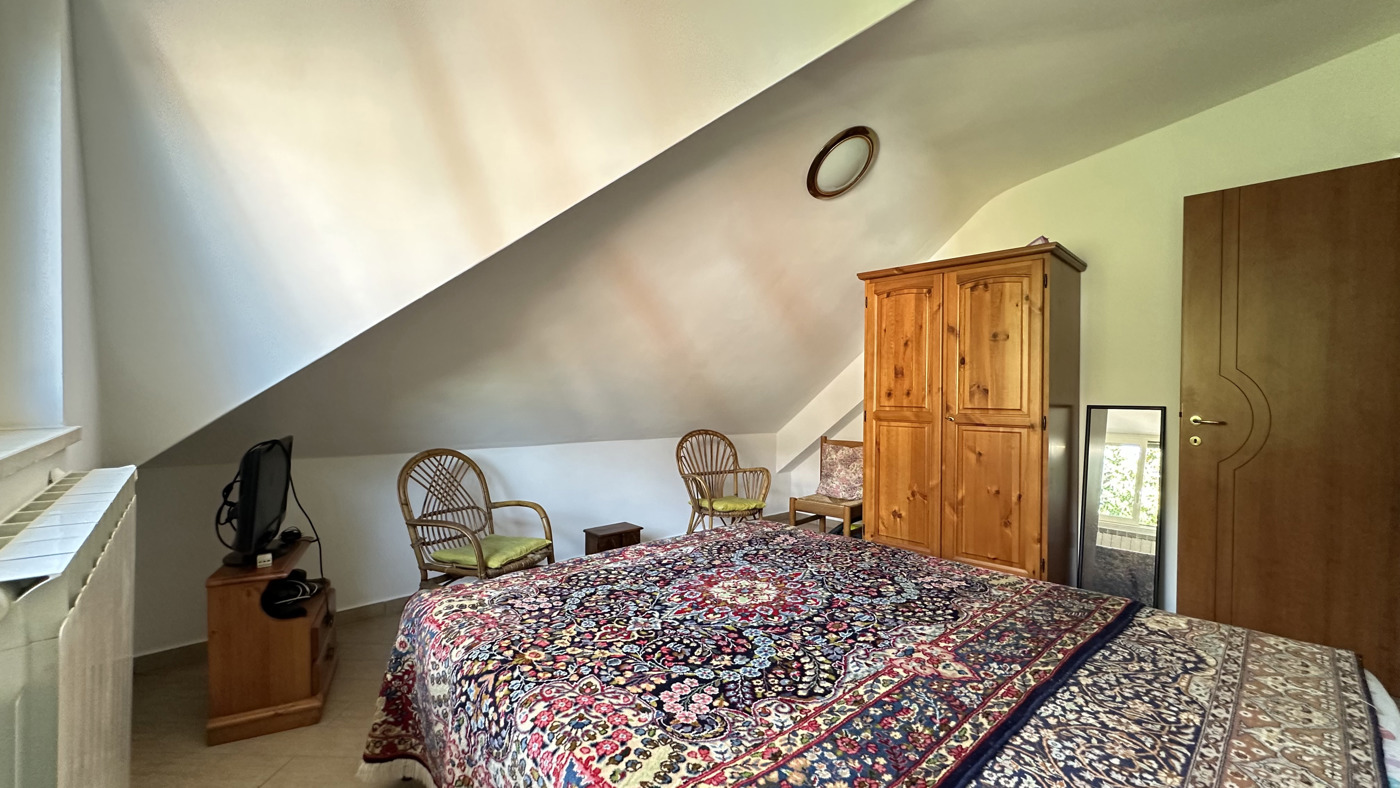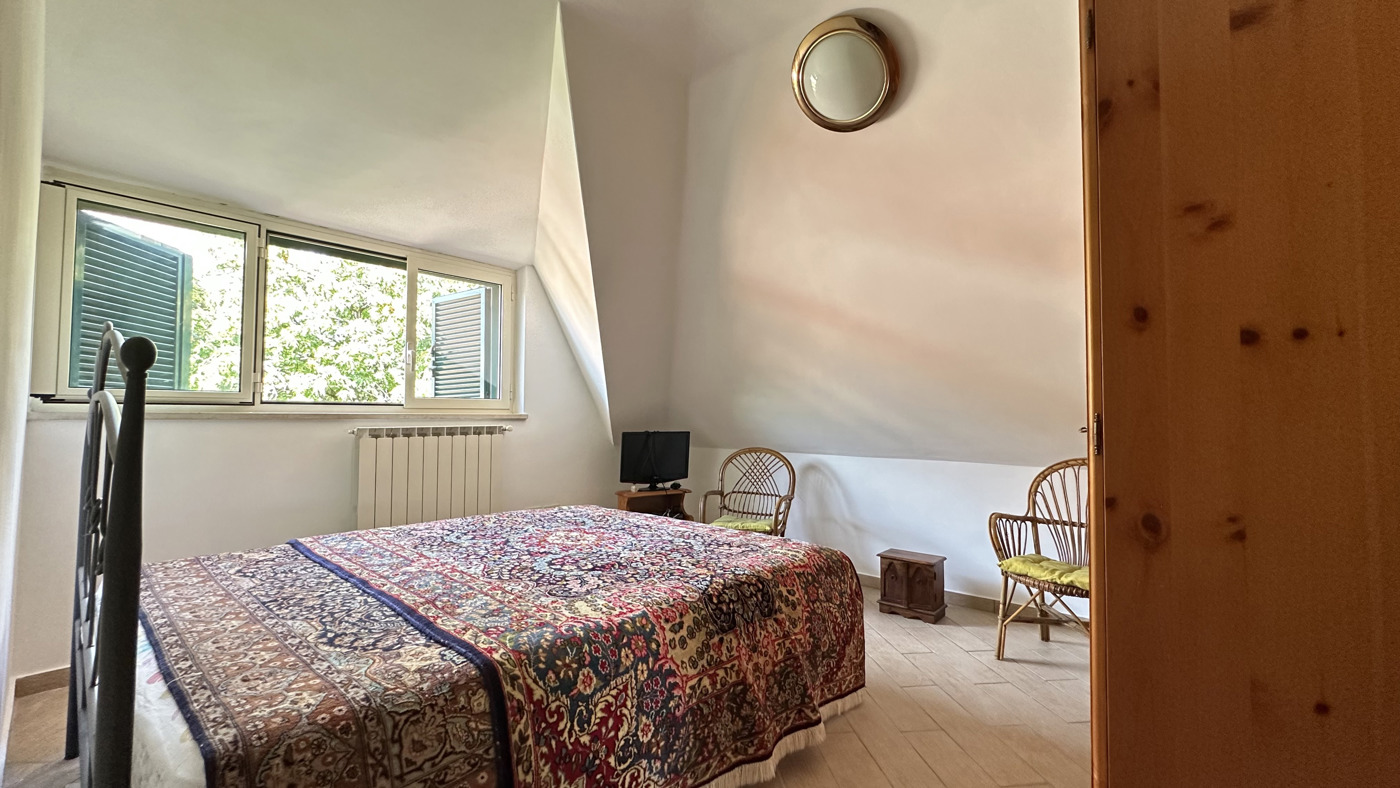 Un corridoio conduce alla camera da letto matrimoniale, spaziosa e silenziosa, mentre accanto si trova il bagno con doccia.