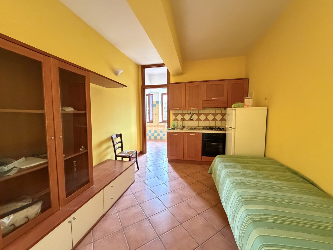 Limmobile si presenta luminoso e completamente arredato, ed composto da: -soggiorno con angolo cottura -camera da letto -bagno con doccia e doppia finestra Lappartamento privo di balcone, ma dispone di una comoda area comune adibita a stenditoio.