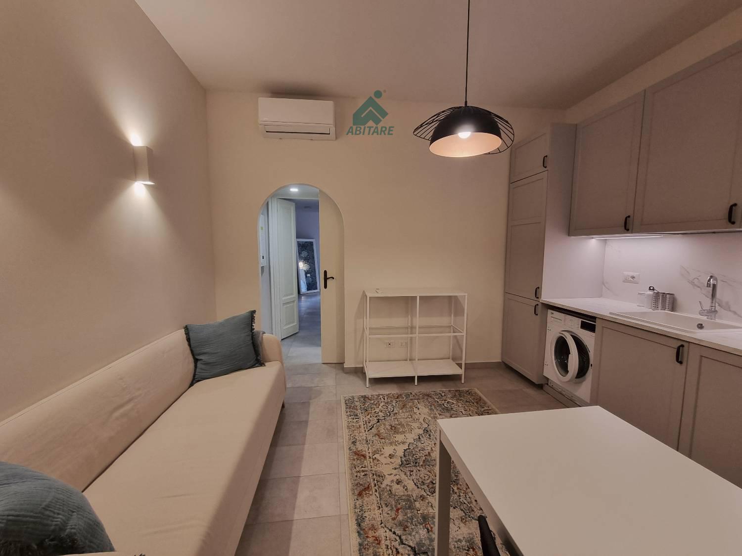 Lappartamento, curato in ogni dettaglio, composto da ingresso, luminoso soggiorno con cucina a vista completamente attrezzata (dotata di lavastoviglie e lavatrice), disimpegno, bagno cieco con comoda doccia, pratica zona cabina armadio e due ripostigli aerei.