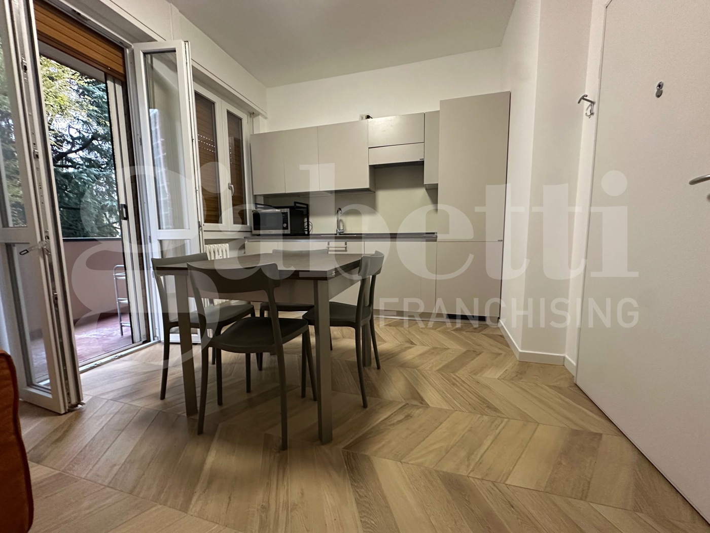 Rif. 72/25 Gabetti Santa Rita/Famagosta - Ad. ze Piazza Miani / via Teramo in contesto signorile anni 70 con ampio parco condominiale e ascensore proponiamo splendido bilocale di mq50ca di nuova realizzazione cos composto: disimpegno d'ingresso, soggiorno con cucina a vista e balcone, camera da letto con terrazzo angolare e bagno.