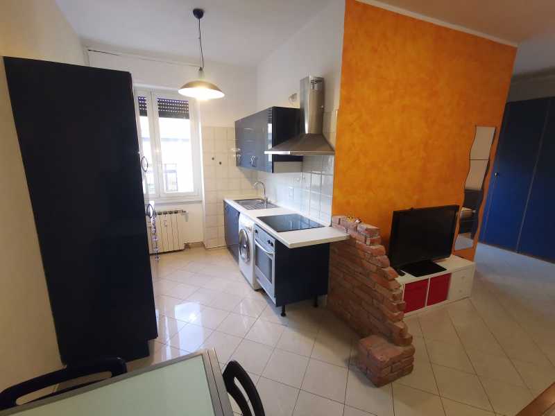 L'appartamento è composto da ingresso su ampio locale unico con angolo cottura, divano, libreria divisoria per la zona notte con letto matrimoniale contenitore, armadio 4 ante con cassettiera interna, balcone, antibagno e bagno finestrato.