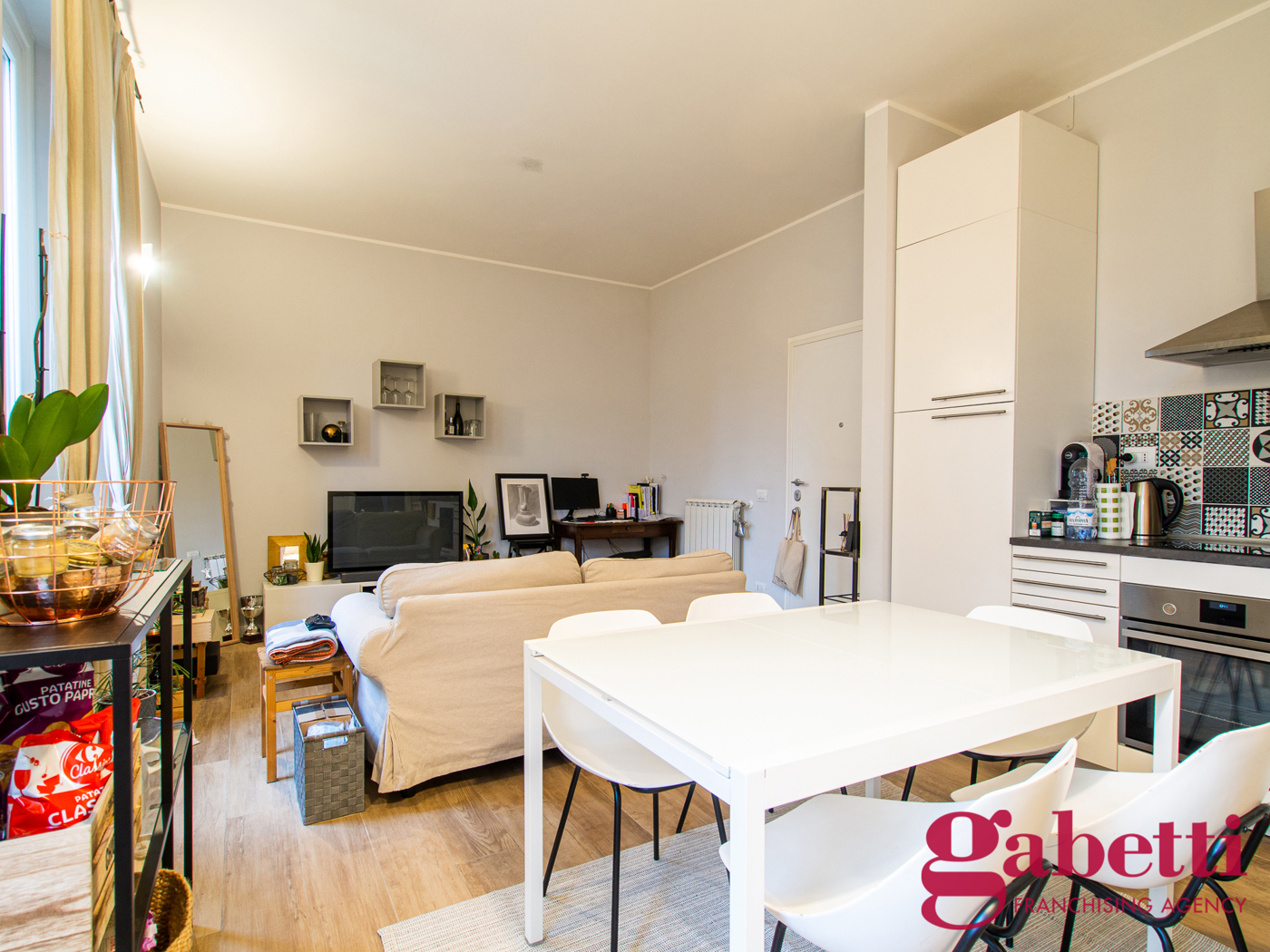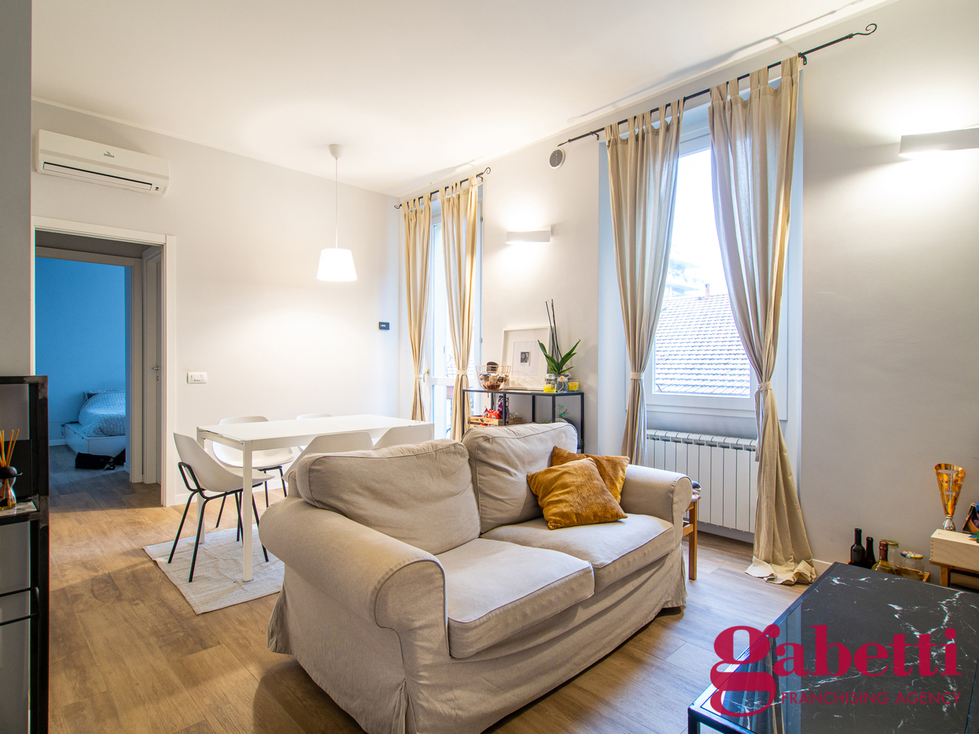 Citt studi, nella richiestissima via Ampere, all'interno di un affascinante stabile anni '30, completamente ristrutturato nelle parti comuni, si propone elegante e moderna soluzione posta al secondo e ultimo piano senza ascensore.