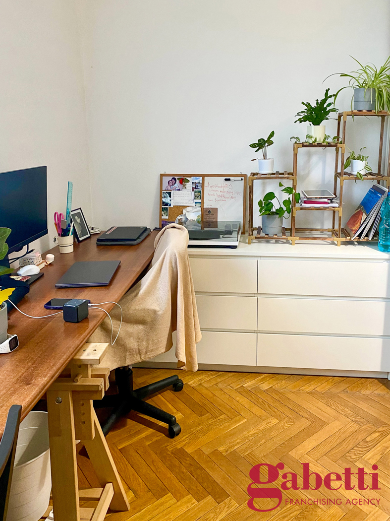 Lappartamento si trova al terzo piano con ascensore ed composto da: ingresso, zona giorno con cucina a vista, camera da letto con armadio e scrivania, bagno finestrato con doccia e lavatrice, ripostiglio.