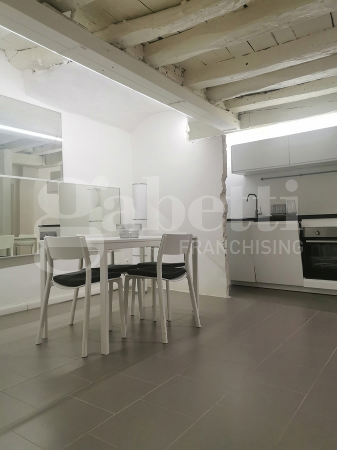Proponiamo in zona centralissima in AFFITTO appartamento in buone condizioni e completamente arredato posto al piano primo ammezzato (soffitti alti 2.55 m) di palazzo signorile di totali tre piani, composto da ingresso su sala da pranzo con cucina a vista, soggiorno, camera da letto matrimoniale con cabina armadio, disimpegno e bagno con doccia finestrato.
