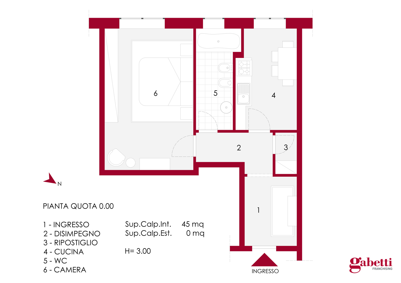 Limmobile, posto al 4° piano con ascensore, ha una superficie di 45 mq ben distribuiti e si compone di: ingresso, cucina abitabile, ampia camera da letto matrimoniale, bagno con vasca e comodo ripostiglio, ideale per ottimizzare gli spazi.