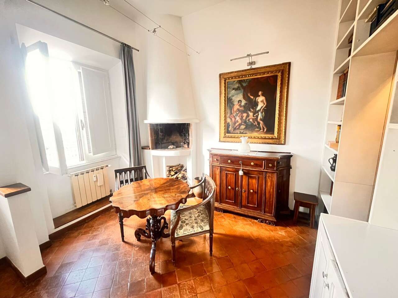 L'ingresso conduce ad una zona giorno ampia e accogliente con camino, ideale per momenti di relax.