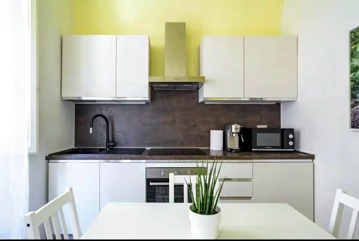 - CUCINA abitabile, completamente accessoriata con frigorifero, lavastoviglie, forno, piano cottura a induzione, microonde, macchina per espresso, bollitore, tostapane, pentole, padelle e stoviglie.