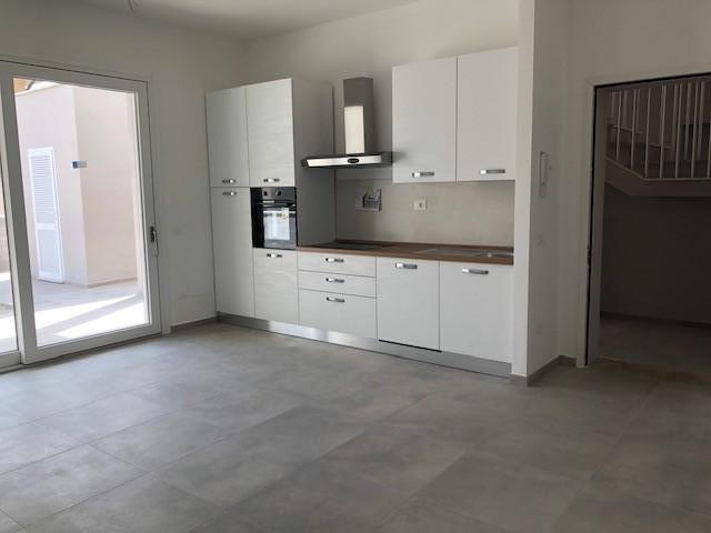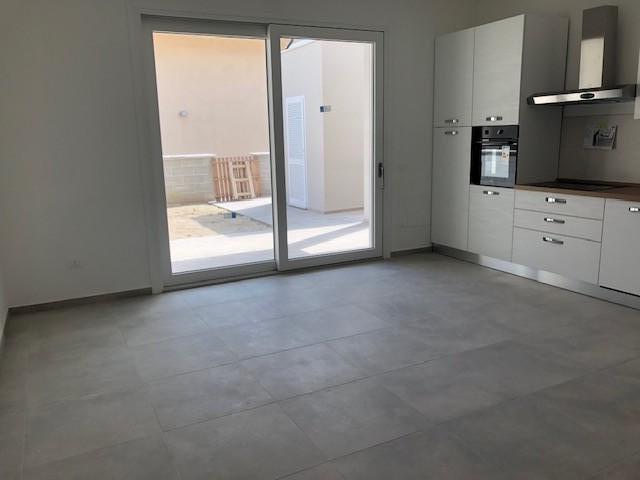 L'appartamento si compone di zona giorno con angolo cottura, dalla quale si accede all'ampio loggiato ed al giardino, disimpegno notte, camera matrimoniale con accesso ad ulteriore spazio esterno privato e bagno.
