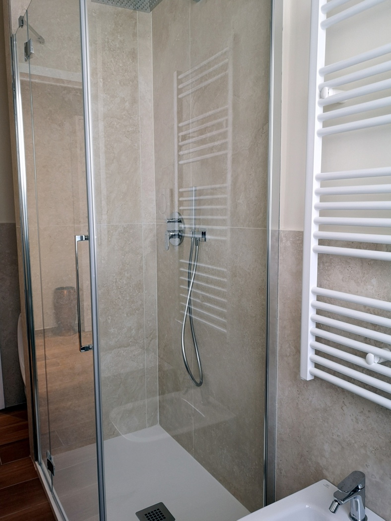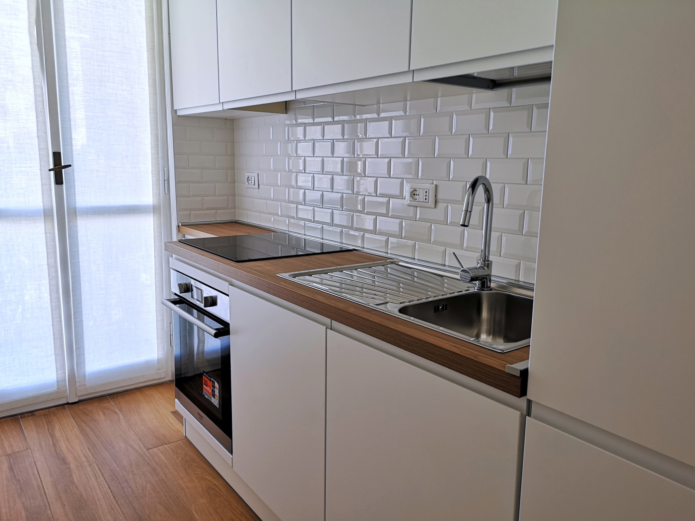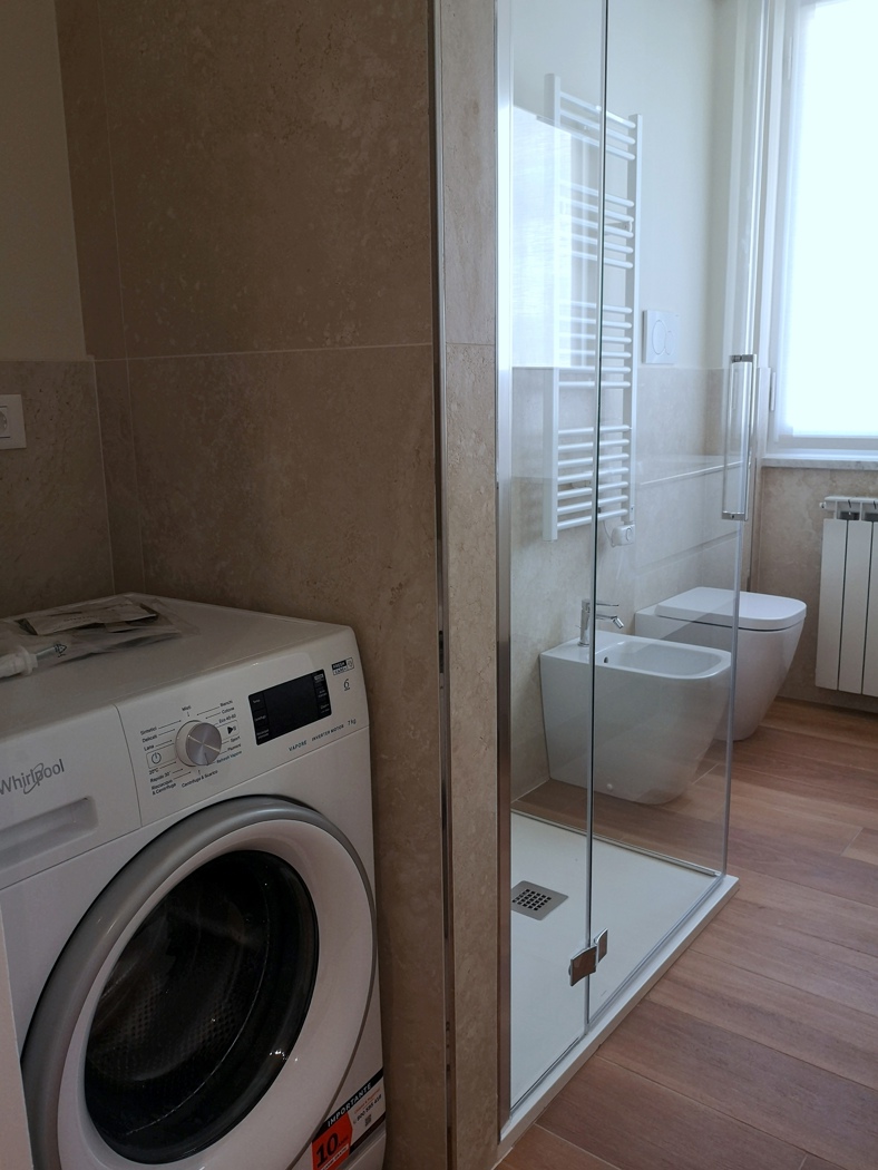 E' dotato di aria condizionata e la cucina attrezzata con tutti gli elettrodomestici, piano cottura ad induzione, forno, frigo con congelatore, lavastoviglie e lavabiancheria; si presenta molto luminoso e silenzioso.