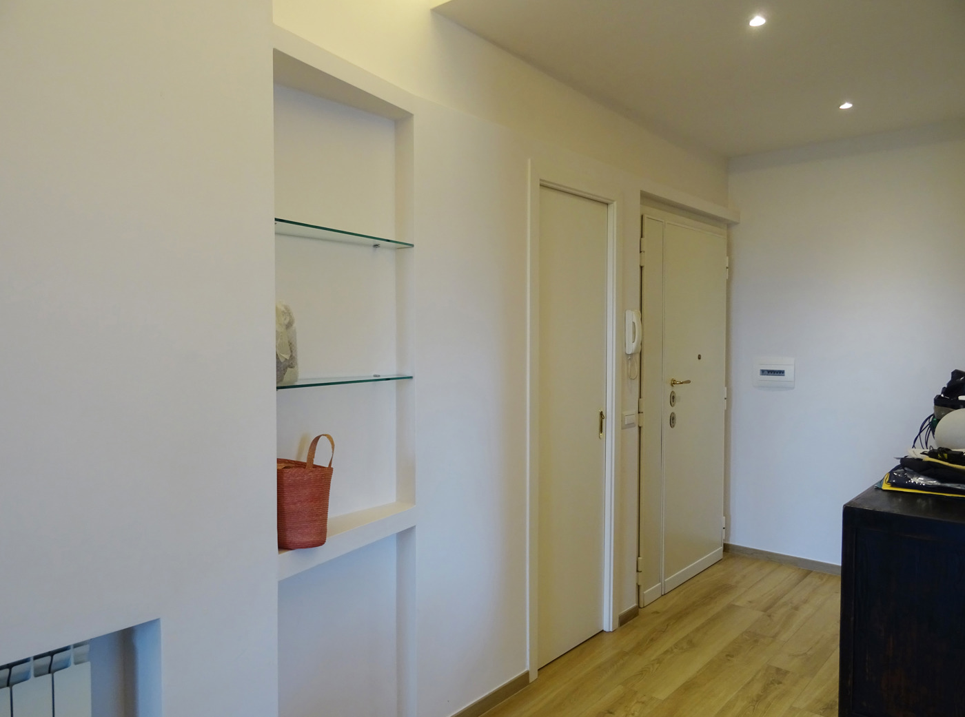 Presenta inoltre porta blindata, infissi in alluminio doppio vetro, inferriate , impianto di climatizzazione sia nella zona giorno che nella zona notte e parquet all'interno della camera da letto.