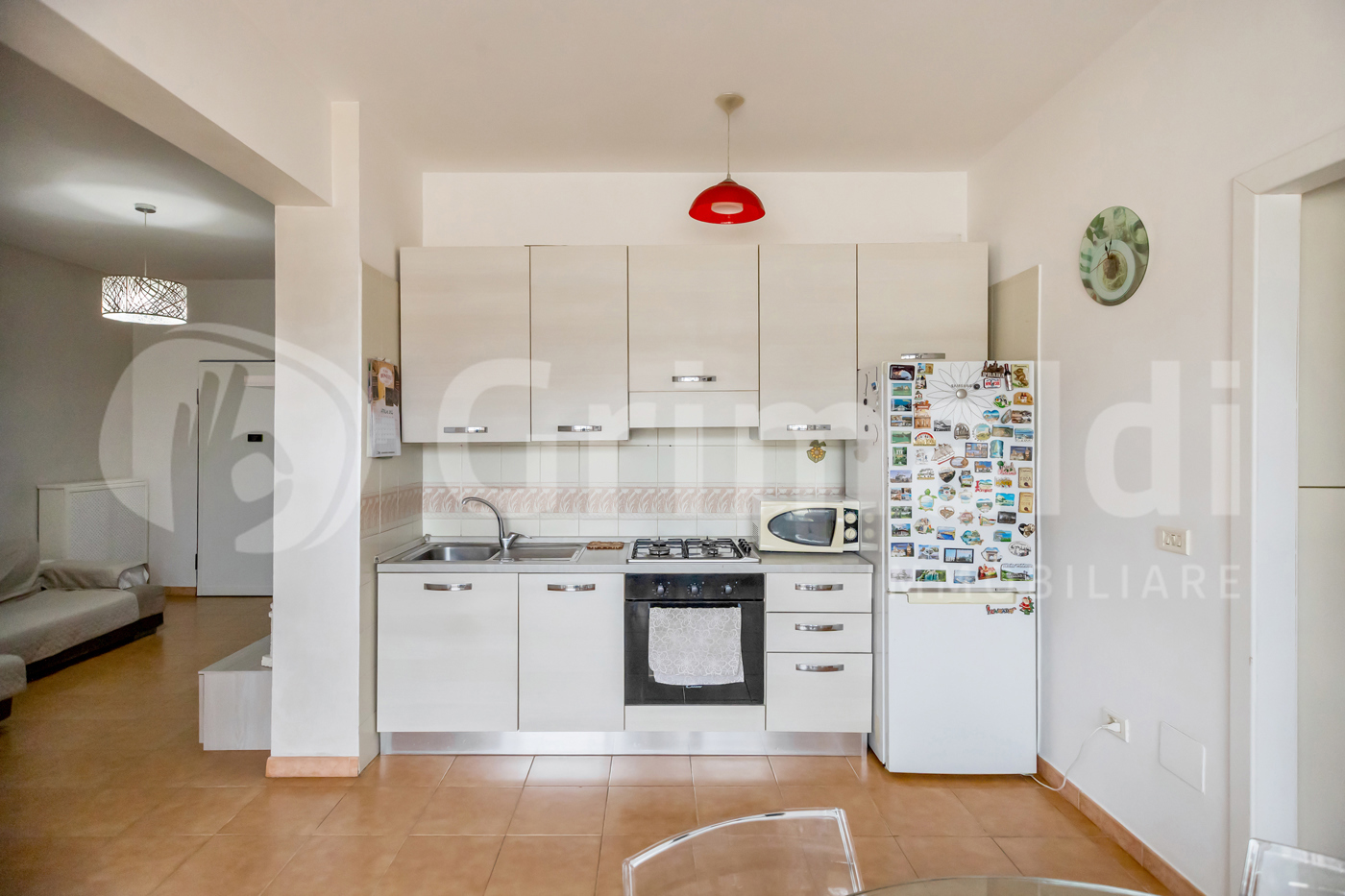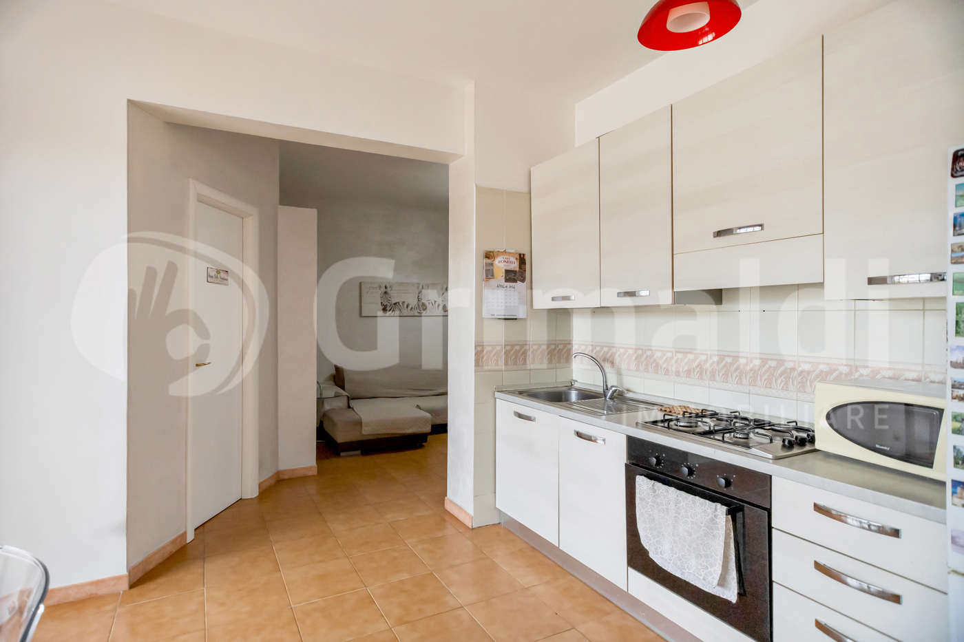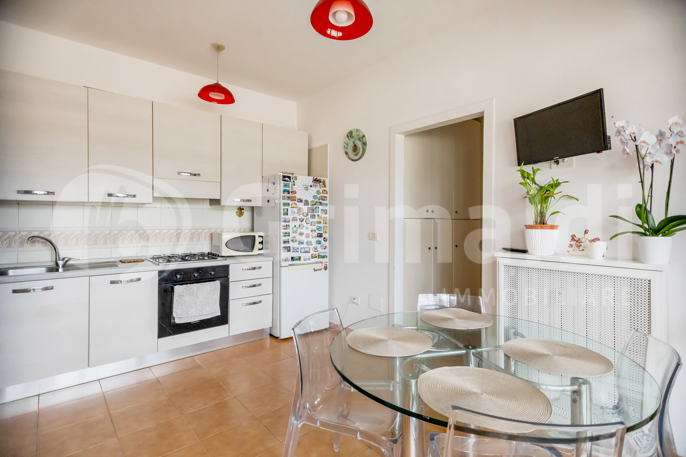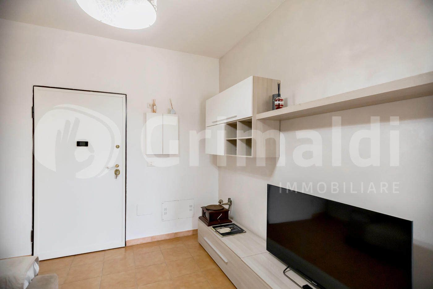 Lappartamento si apre su un ingresso che conduce alla zona giorno, composta da un luminoso soggiorno con angolo cottura a vista, perfettamente integrato e funzionale.
