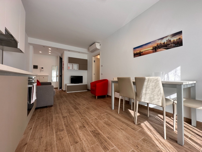 La soluzione è cosi composta: ingresso su ampio soggiorno living con cucina abitabile a vista ed ampio terrazzo (14 mq), disimpegno notte, camera matrimoniale, bagno finestrato, con box doccia e soffione.