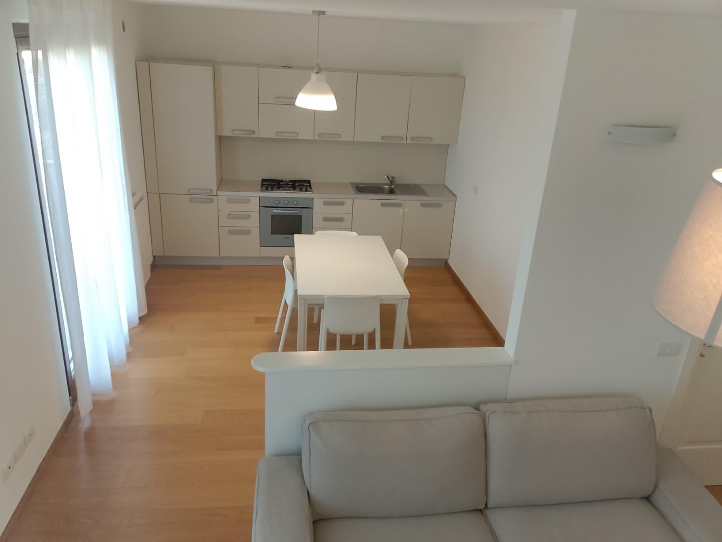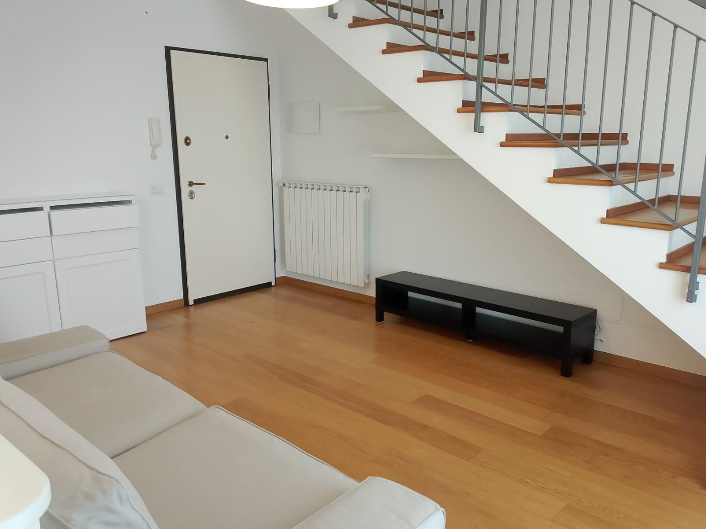 L'appartamento si compone di un' ampia zona giorno con angolo cottura defilato, balcone, antibagno e bagno; tramite bella scala a vista si accede al piano superiore dove troviamo una camera ed un secondo bagno oltre terrazza.