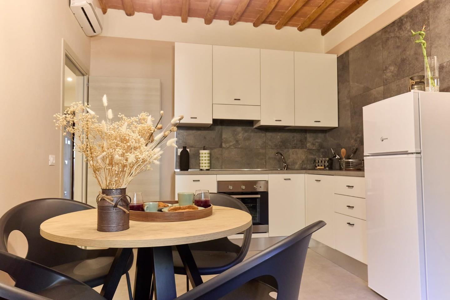 L'appartamento è stato oggetto di recentissima ristrutturazione, pertanto rinnovato in ogni sua parte, arredato e completo di ogni confort, adatto per essere abitato da due persone.