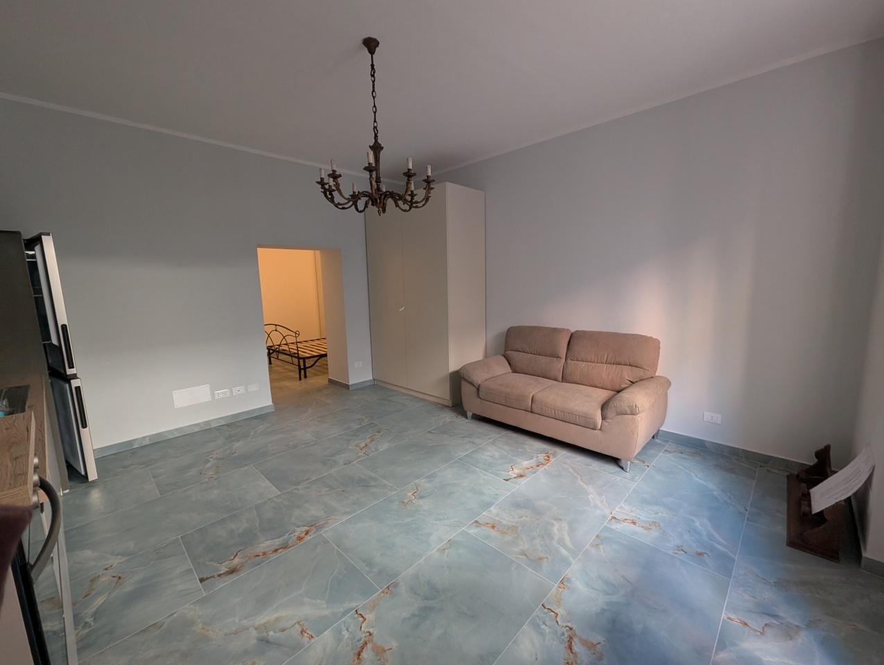 L'appartamento è composto da soggiorno con angolo cottura, camera matrimoniale e bagno.