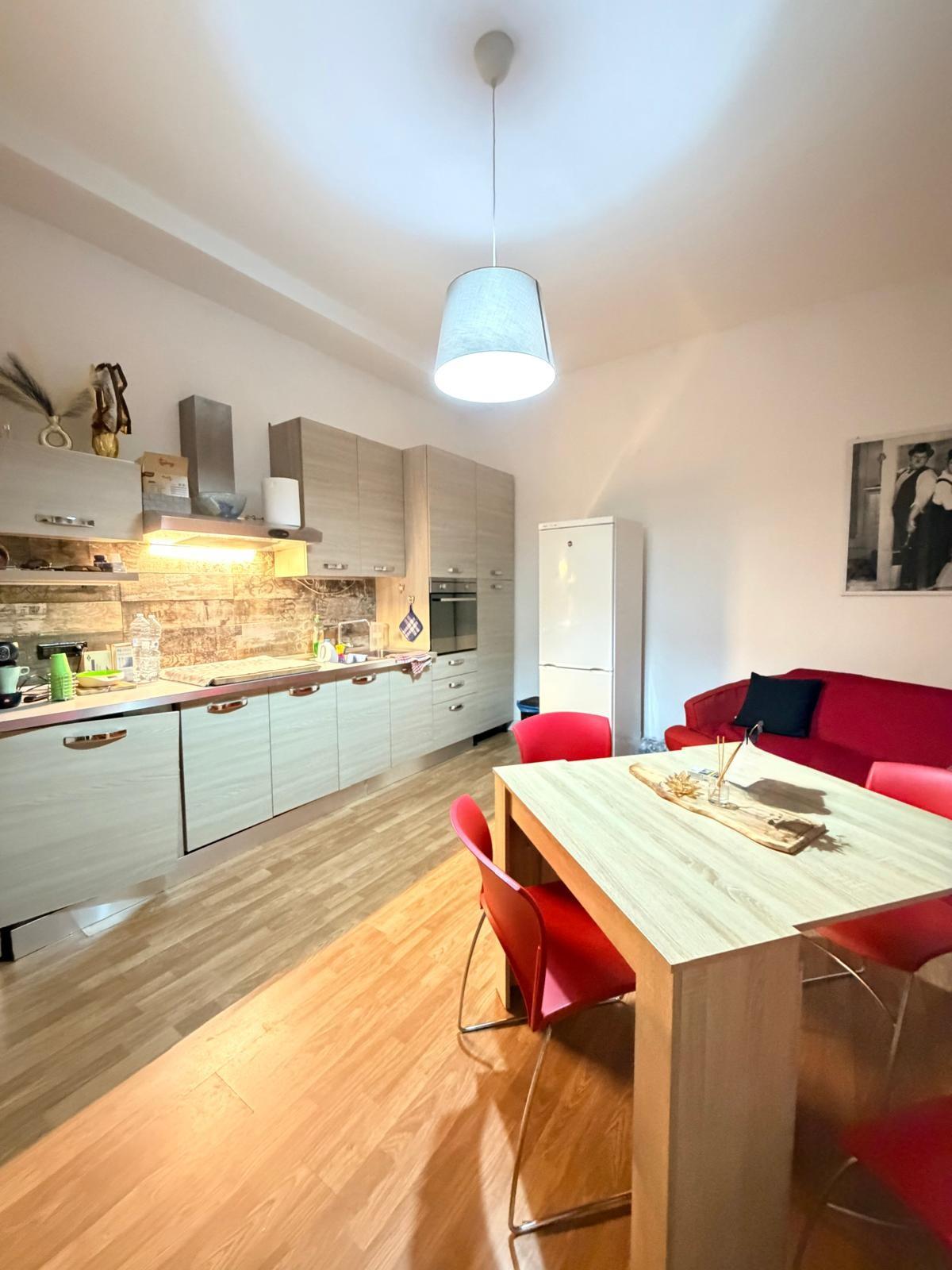 Un ingresso che apre su un soggiorno caldo e armonioso, dove langolo cottura diventa complice delle giornate: pratico, intimo, perfettamente organizzato.
