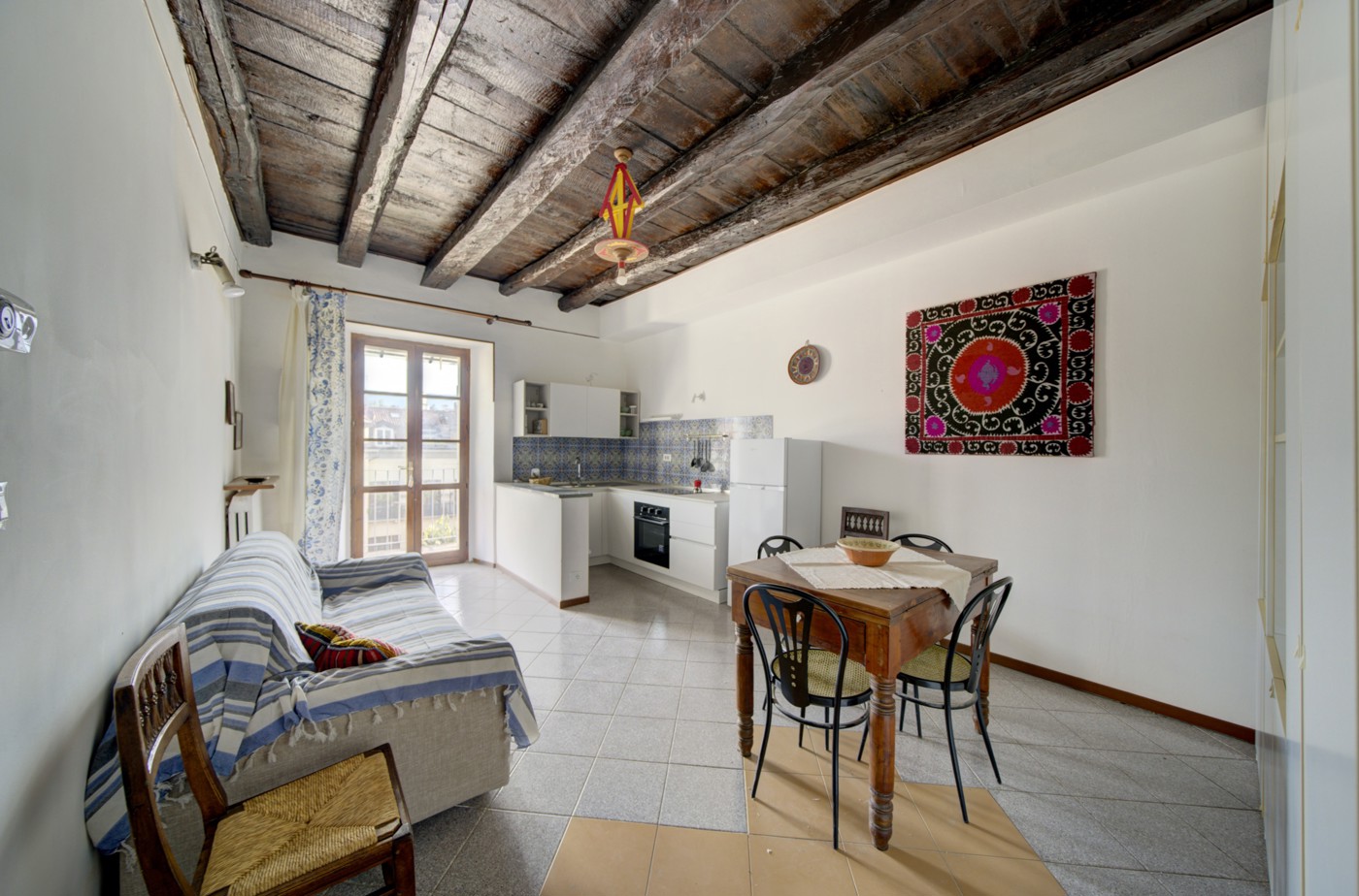 PANORAMICO APPARTAMENTO DI CHARME Nell'antico Borgo Po a 100 mt da Piazza Vittorio, al quarto e ultimo piano di stabile storico realizzato nel 1835 su progetto dell'architetto Talentino, ampio bilocale luminoso composto di soggiorno con cucina aperta, bagno con disimpegno, camera con abbaino alto, oltre ad una ampia soffitta ad uso sgombero, con accesso dalle scale condominiali.