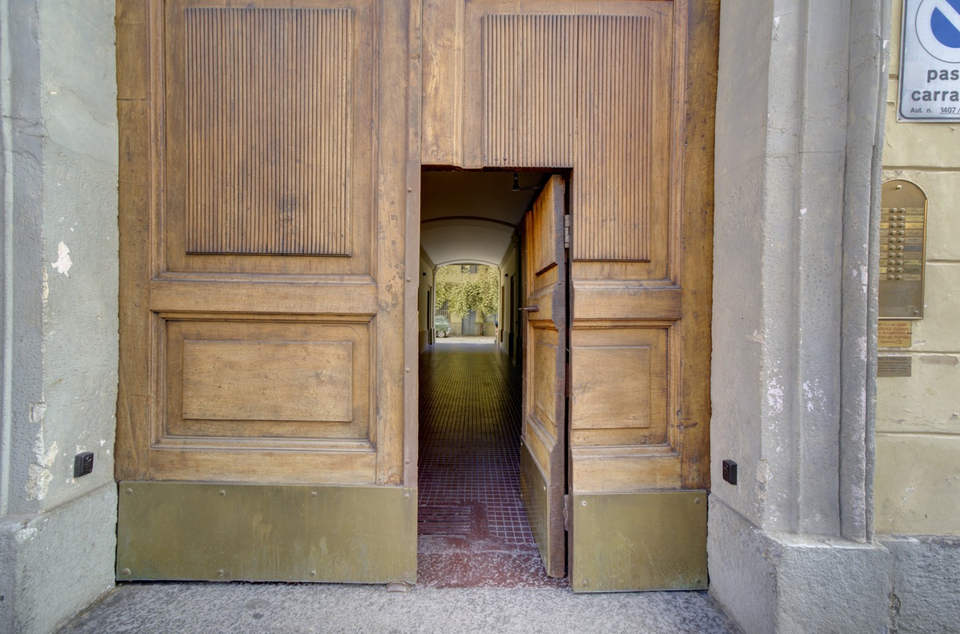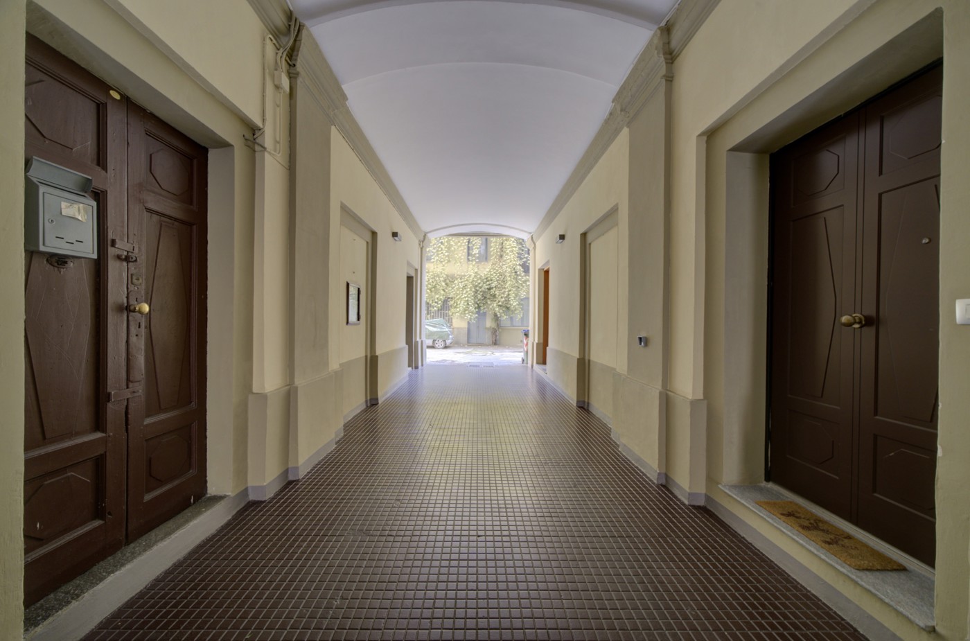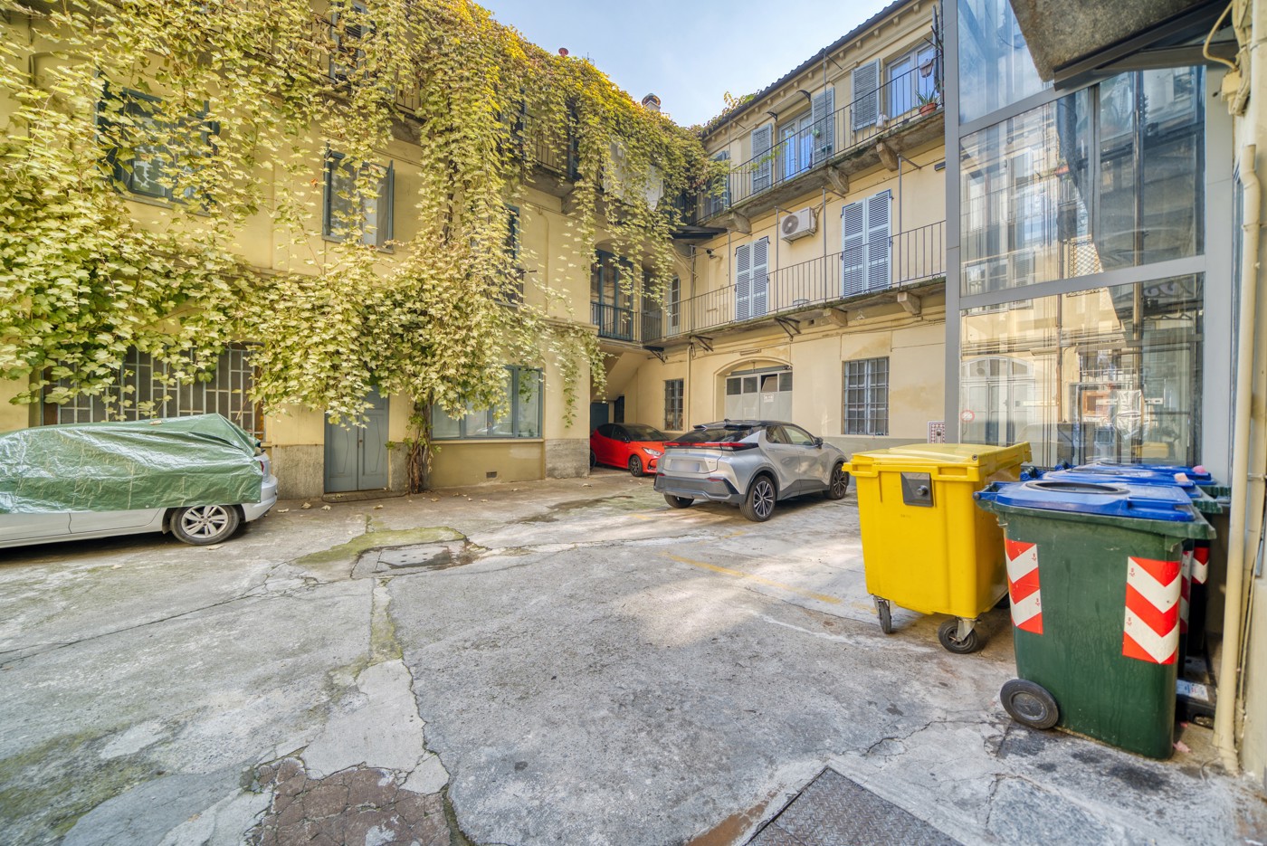 L'appartamento ha accesso da ballatoio, servito al piano da ascensore ed offre un'affascinante vista sui tetti dell'antica Torino, verso la collina dal lato soggiorno e verso le Alpi dal lato camera, con veduta sulla Basilica di Superga, Monte dei Cappuccini, Mole Antonelliana e Istituto delle Rosine.