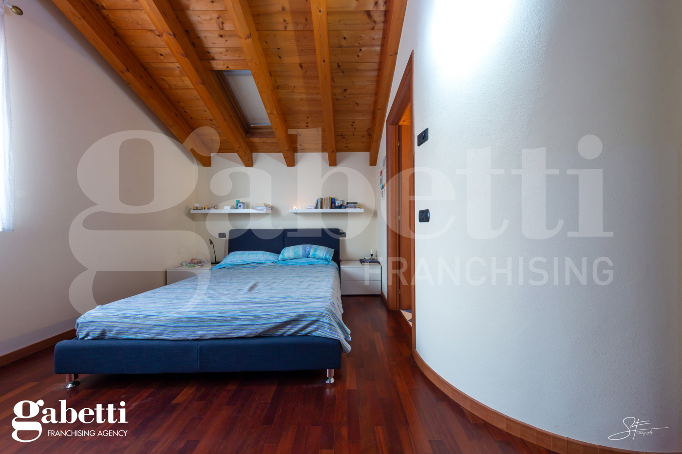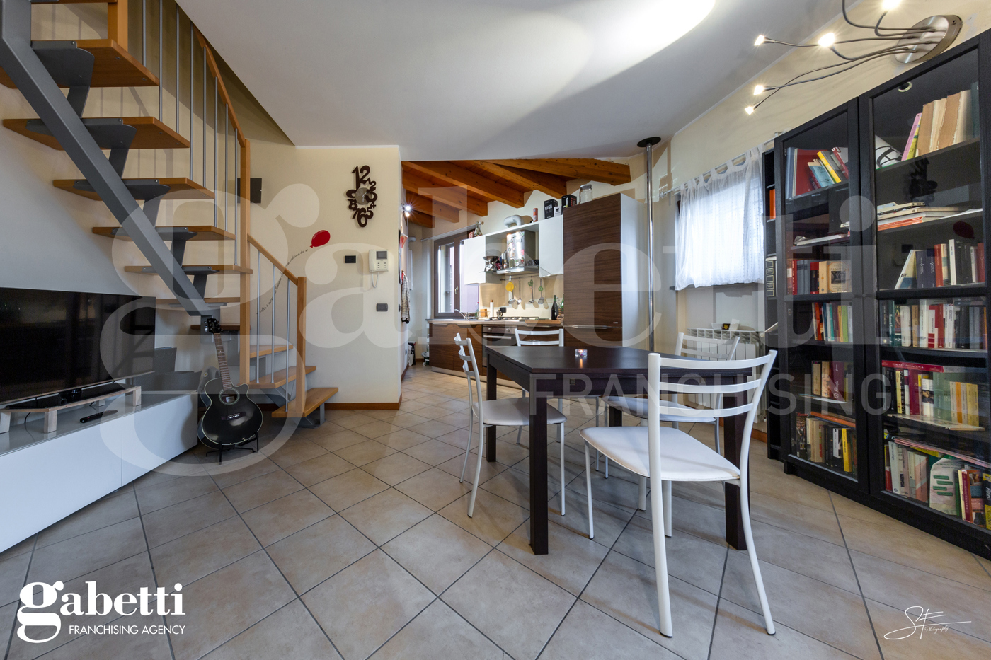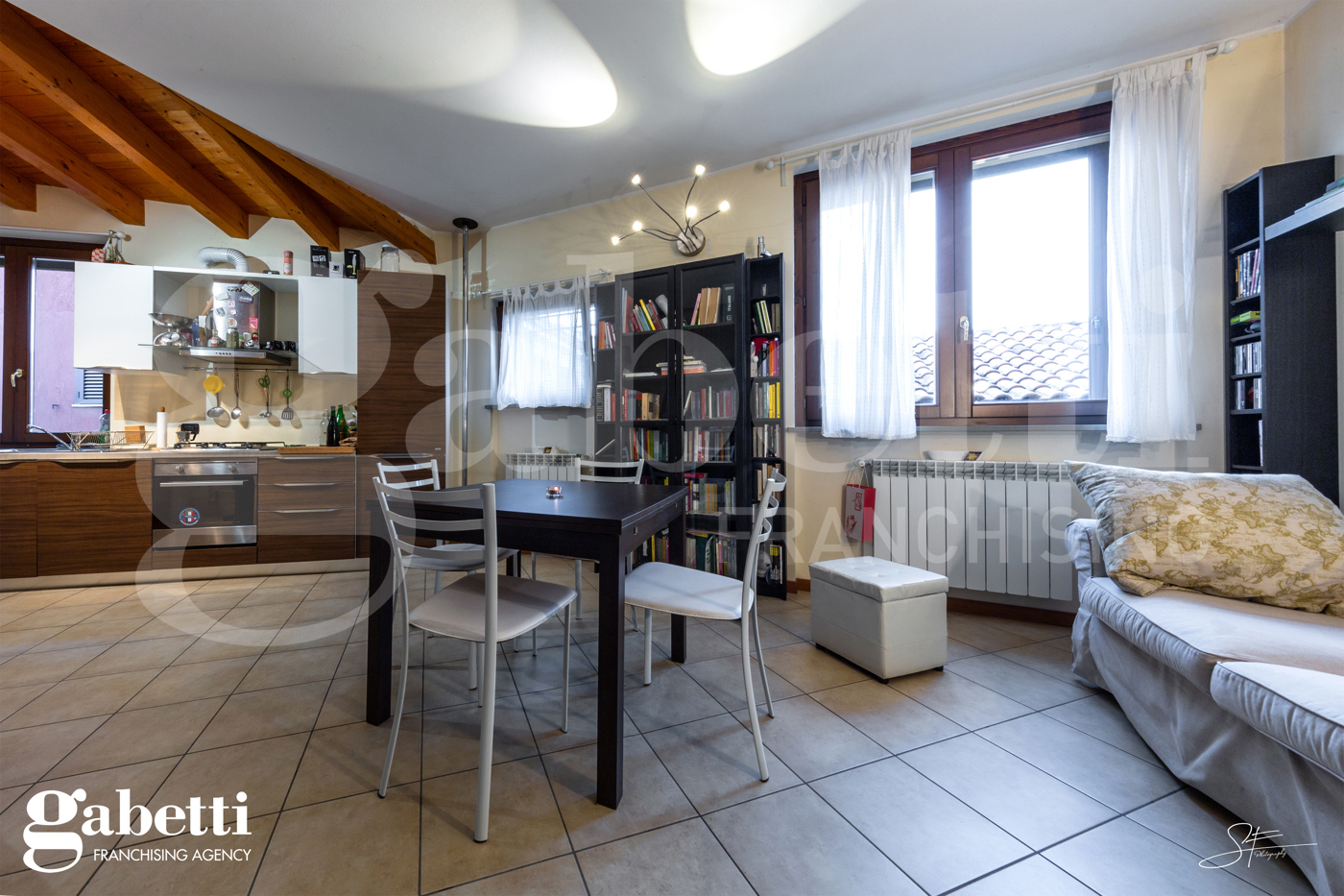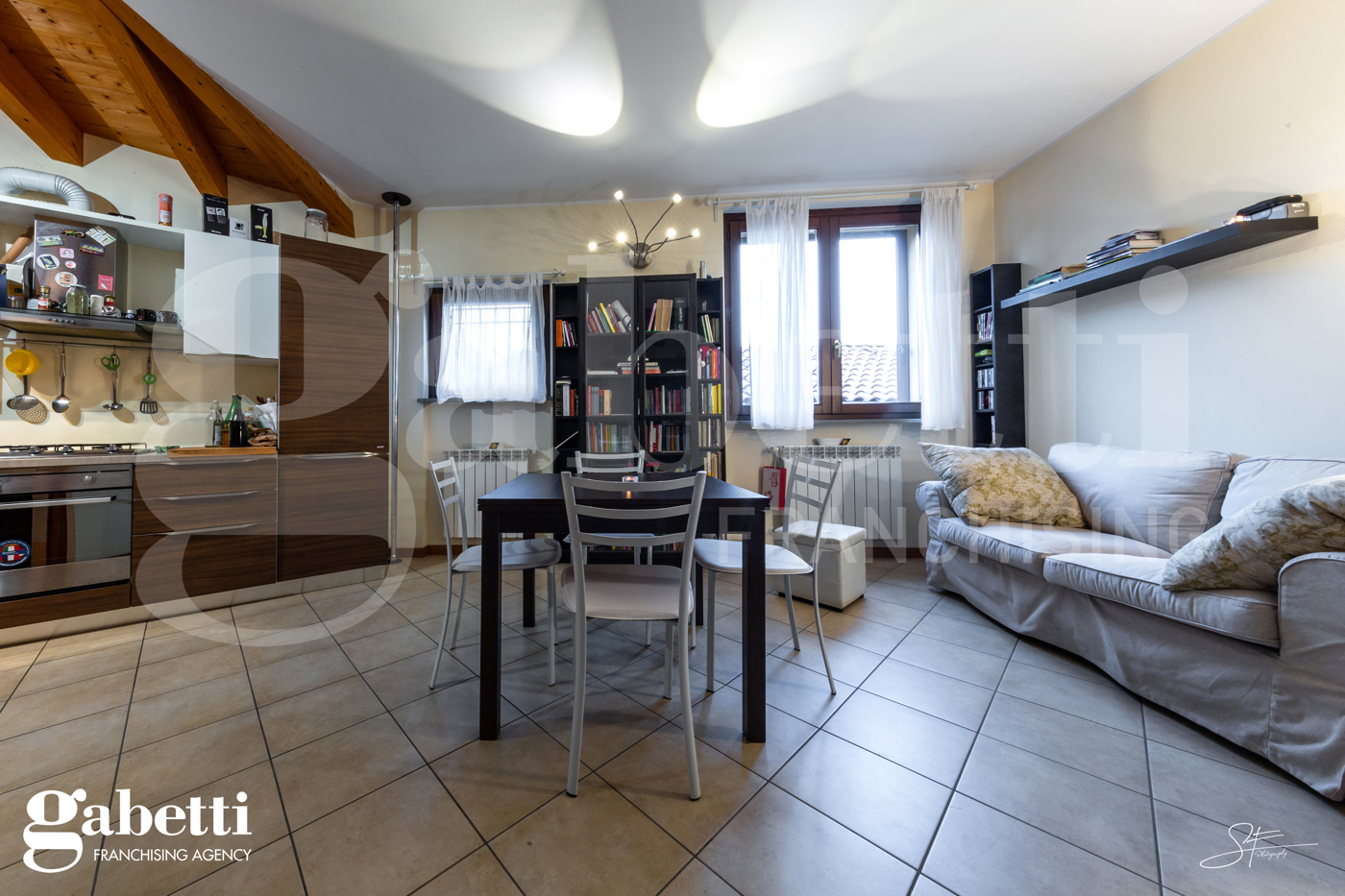 L'appartamento completamente arredato, composto da soggiorno con cucina a vista e servizio/lavanderia dedicato alla zona giorno oltre a camera matrimoniale con cabina armadio e bagno al piano mansardato.