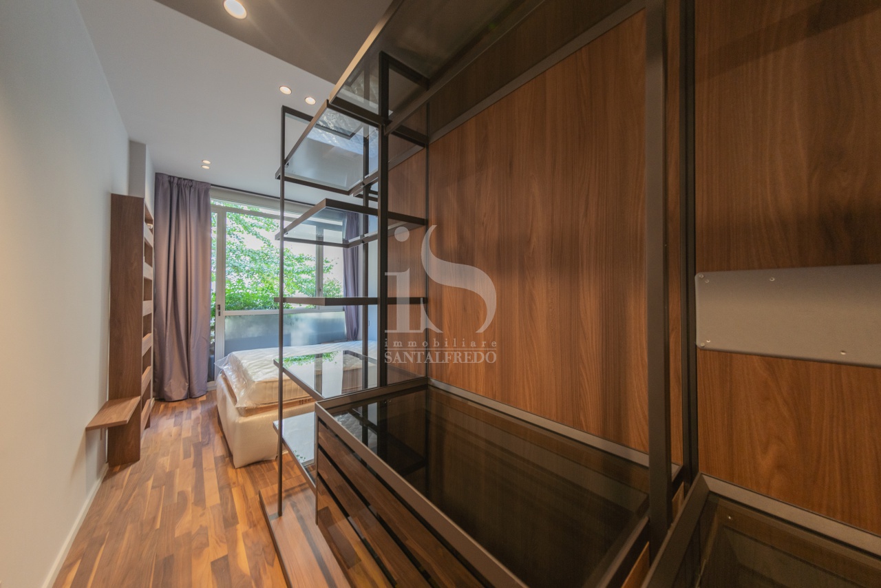 ARREDO SU MISURA La casa viene locata completa di arredo realizzato su misura; per l'impianto di illuminazione, sono state scelte lampade tecniche e decorative, con possibilità di modulare la luce. Tende decorative perfettamente abbinate al contesto.