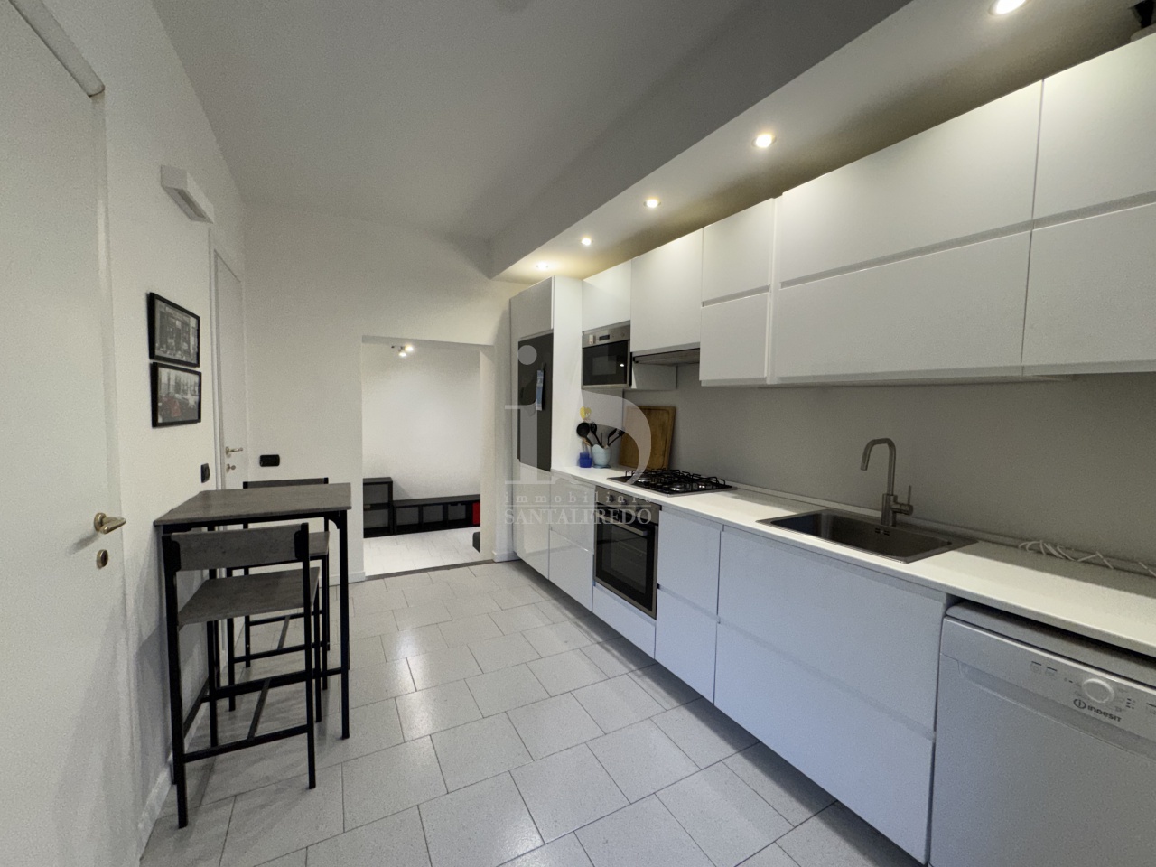 L'abitazione, completamente arredata e pronta per essere abitata, si apre su un ingresso che conduce alla cucina separata e funzionale, dotata di lavastoviglie e completa di tutto il necessario.