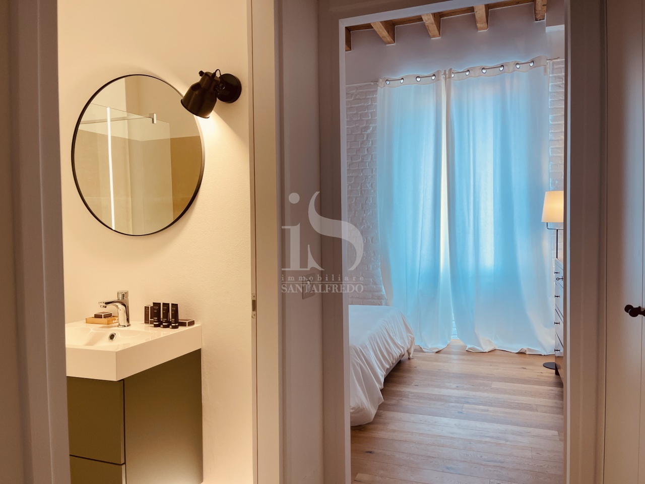 Bagno con grande doccia in cristallo e sanitari sospesi; qui per l'impianto di illuminazione, sono state scelte lampade tecniche e decorative, con possibilità di modulare la luce. Camera da letto dalla generosa metratura con comodo letto matrimoniale ed utile commodè. L'appartamento è particolarmente luminoso, grazie all' ingresso con porte a vetro, alle numerose finestre che lasciano filtrare la luce naturale.