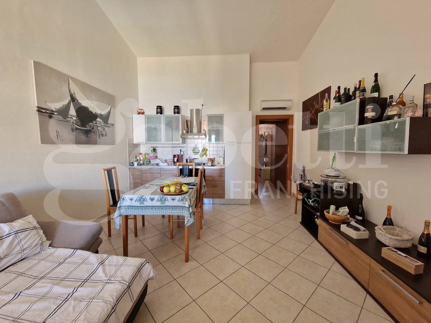 Ampio bivano con doppio posto auto Sinnai - Zona Funtaneddas Gabetti propone in vendita appartamento tipologia bivano edificato nel 2008. L'immobile, sito al secondo e ultimo piano di un mini condominio, composto da ingresso soggiorno con cucina, disimpegno, ampia camera matrimoniale con veranda e bagno con box doccia.