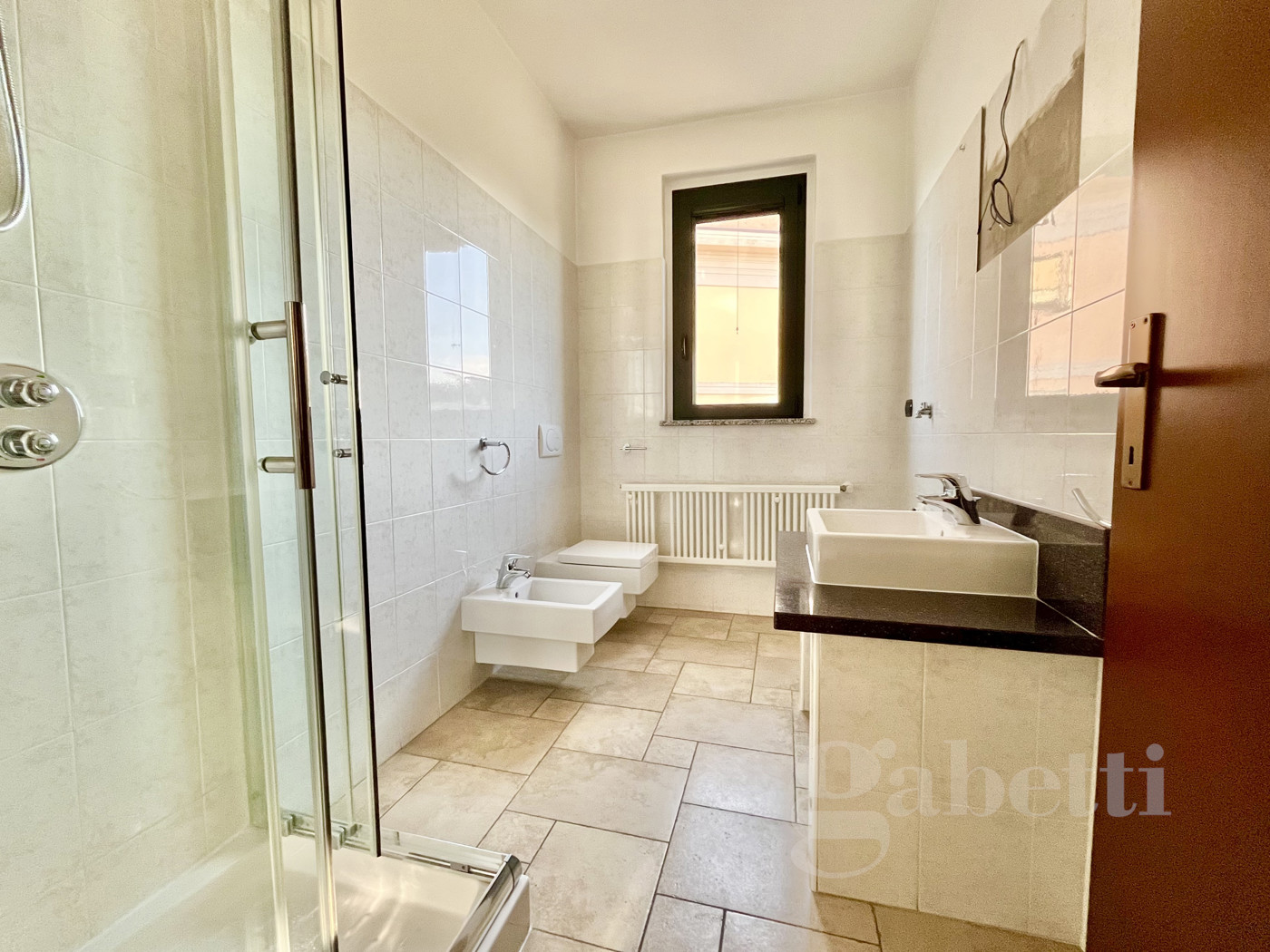 Pavimentazione in gres porcellanato in tutti gli ambienti.