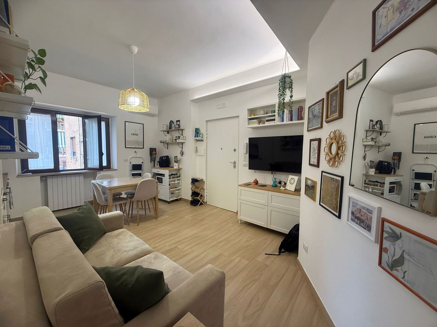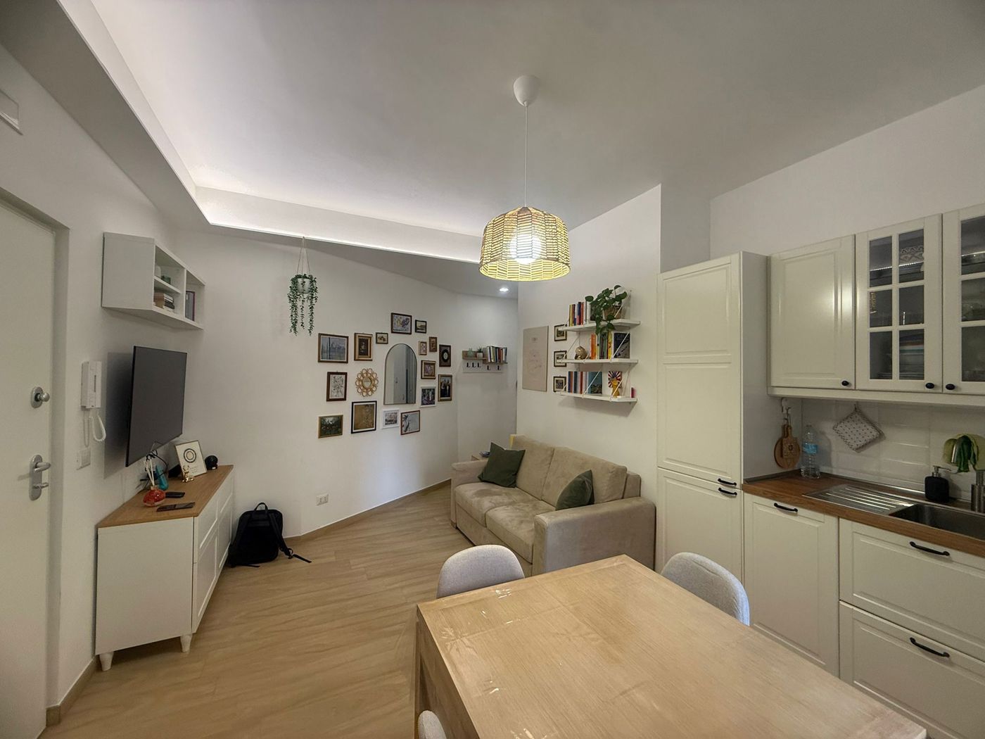 Il bilocale ha una quadratura di 44 mq catastali ed composto da saloncino con angolo cottura, camera da letto con balcone e servizio.