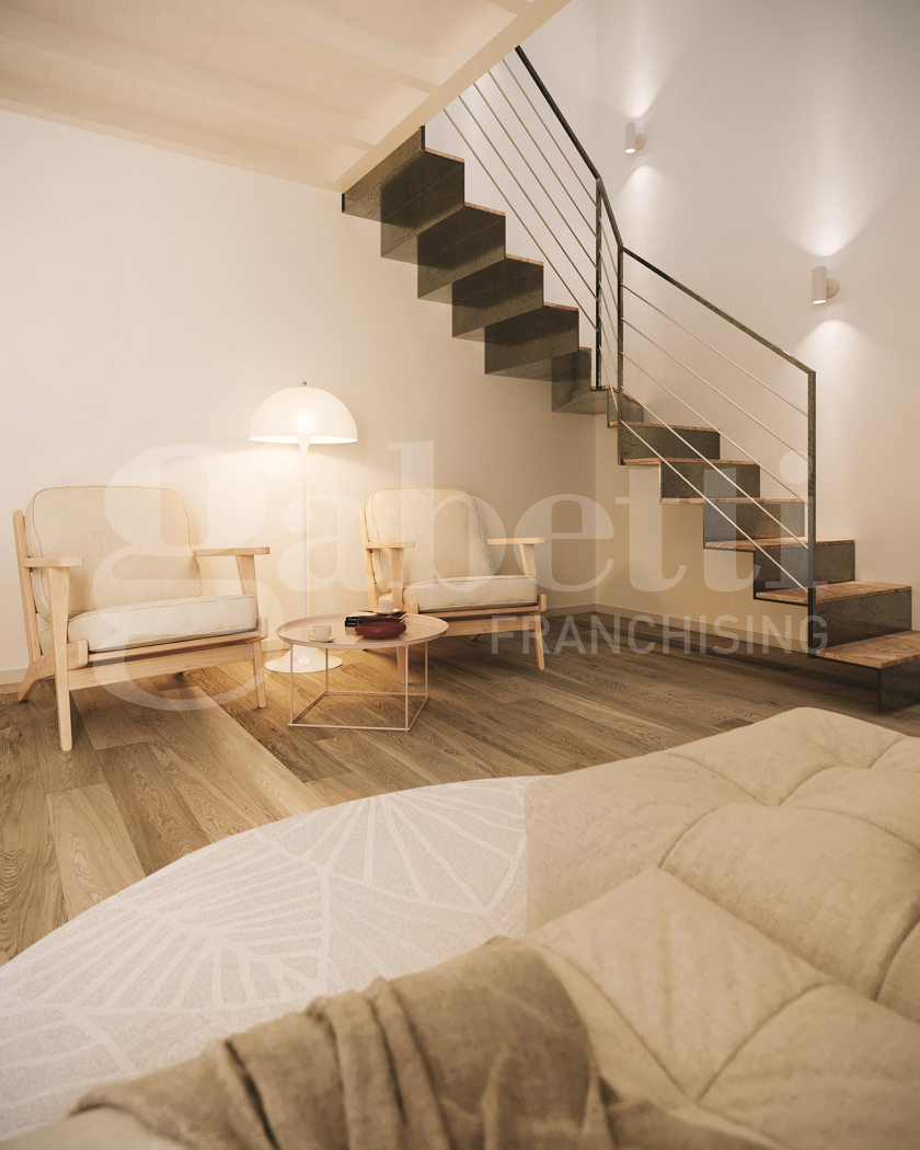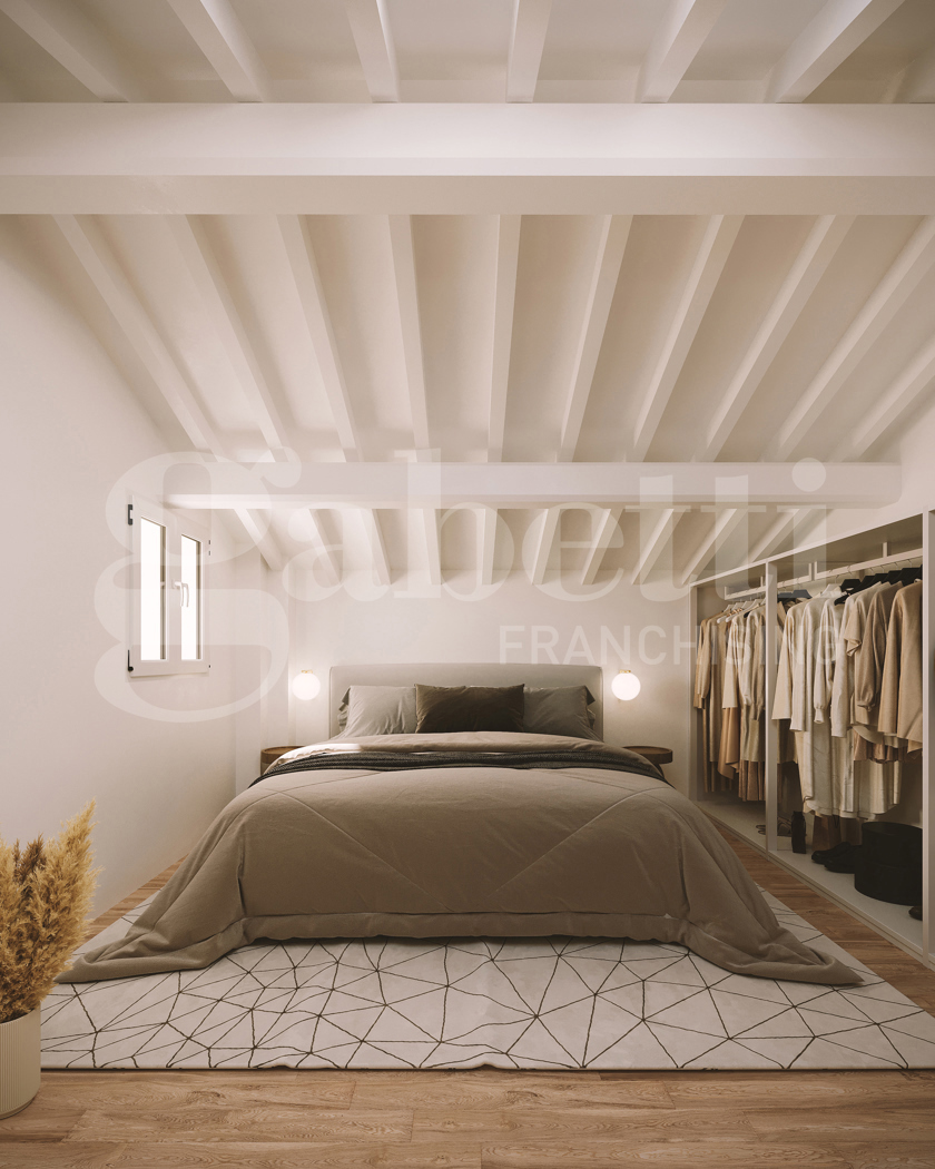 L'appartamento, disposto su 2 livelli composto da: ingresso indipendente su ampia zona living con parete cottura a vista ed un bagno finestrato al piano terra mentre al piano primo troviamo la camera matrimoniale dotata di 2 velux.