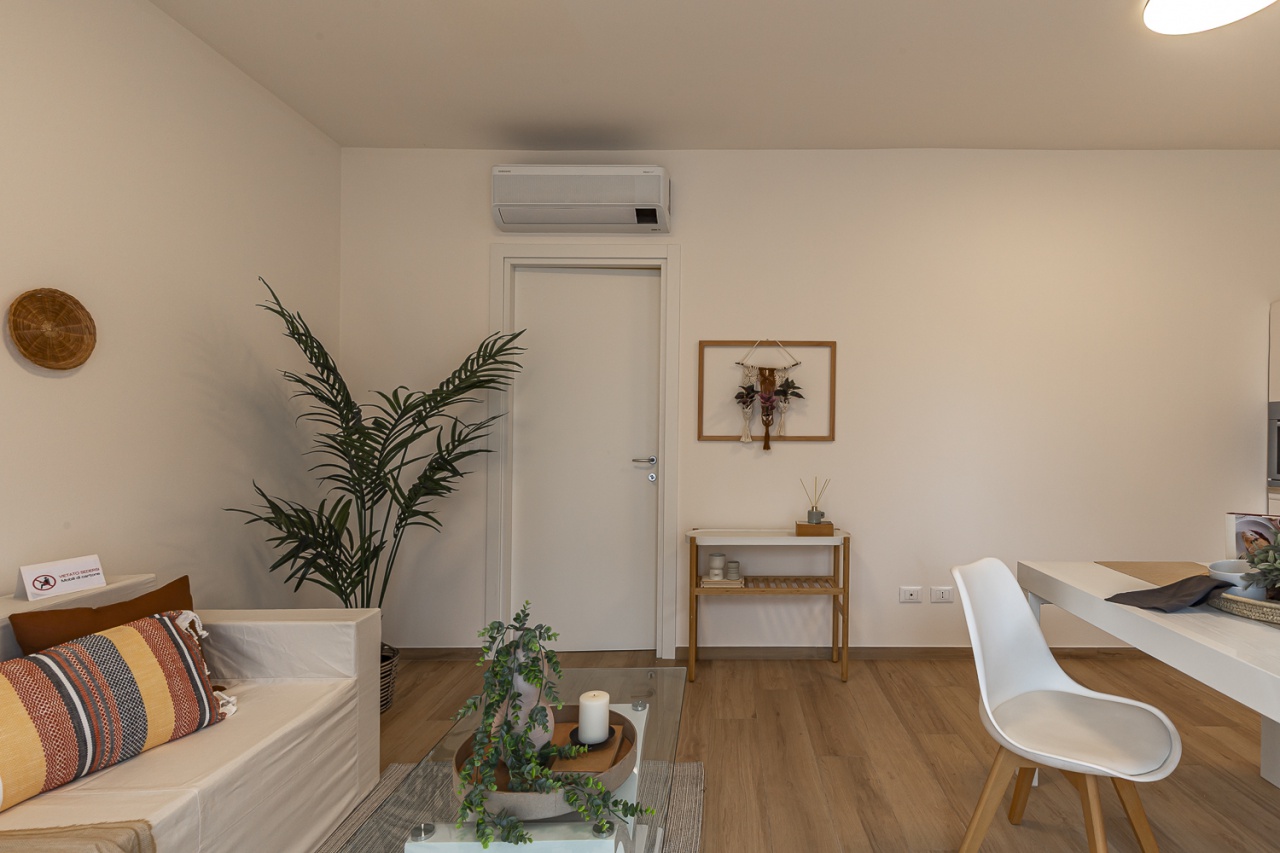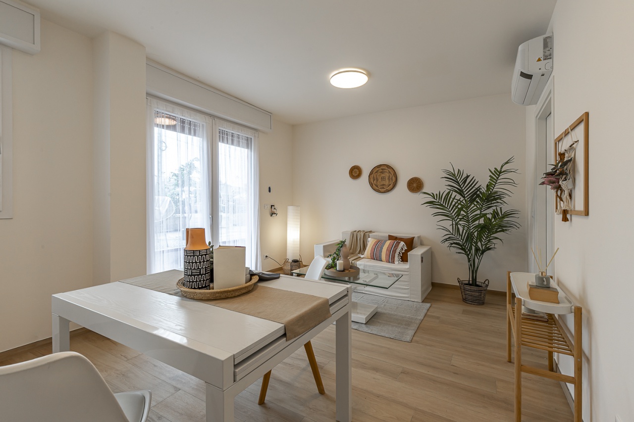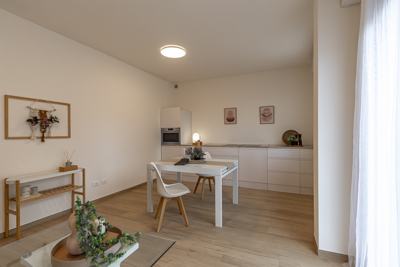 Appartamento al piano terra, di 64mq commerciali composto da ingresso su una piccola corte privata di 12mq, soggiorno con angolo cottura, disimpegno, bagno e camera matrimoniale.
