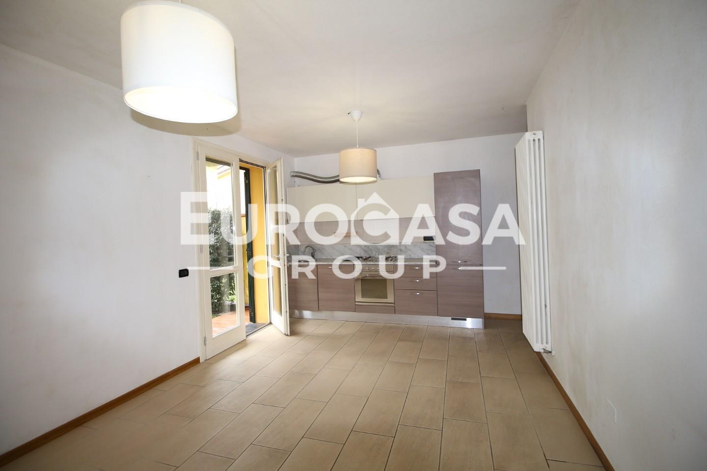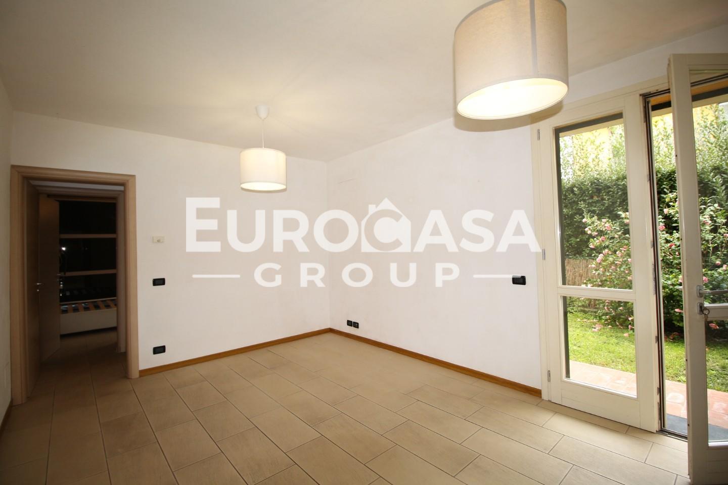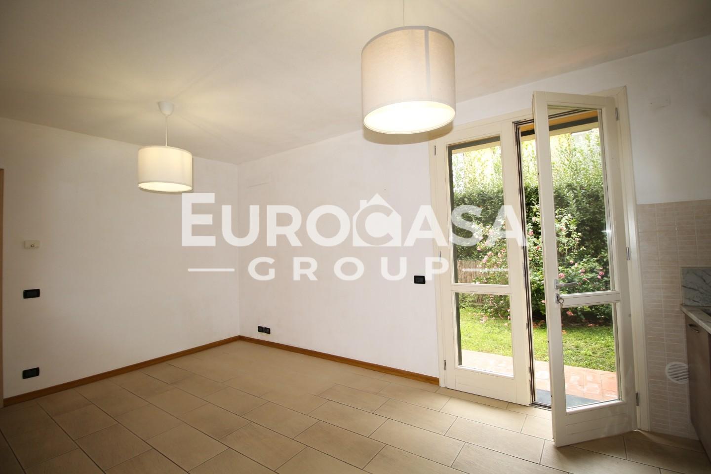 La sala è dotata di un angolo cucina moderna con piano in marmo; la porta-finestra si apre sul bel giardino privato.
