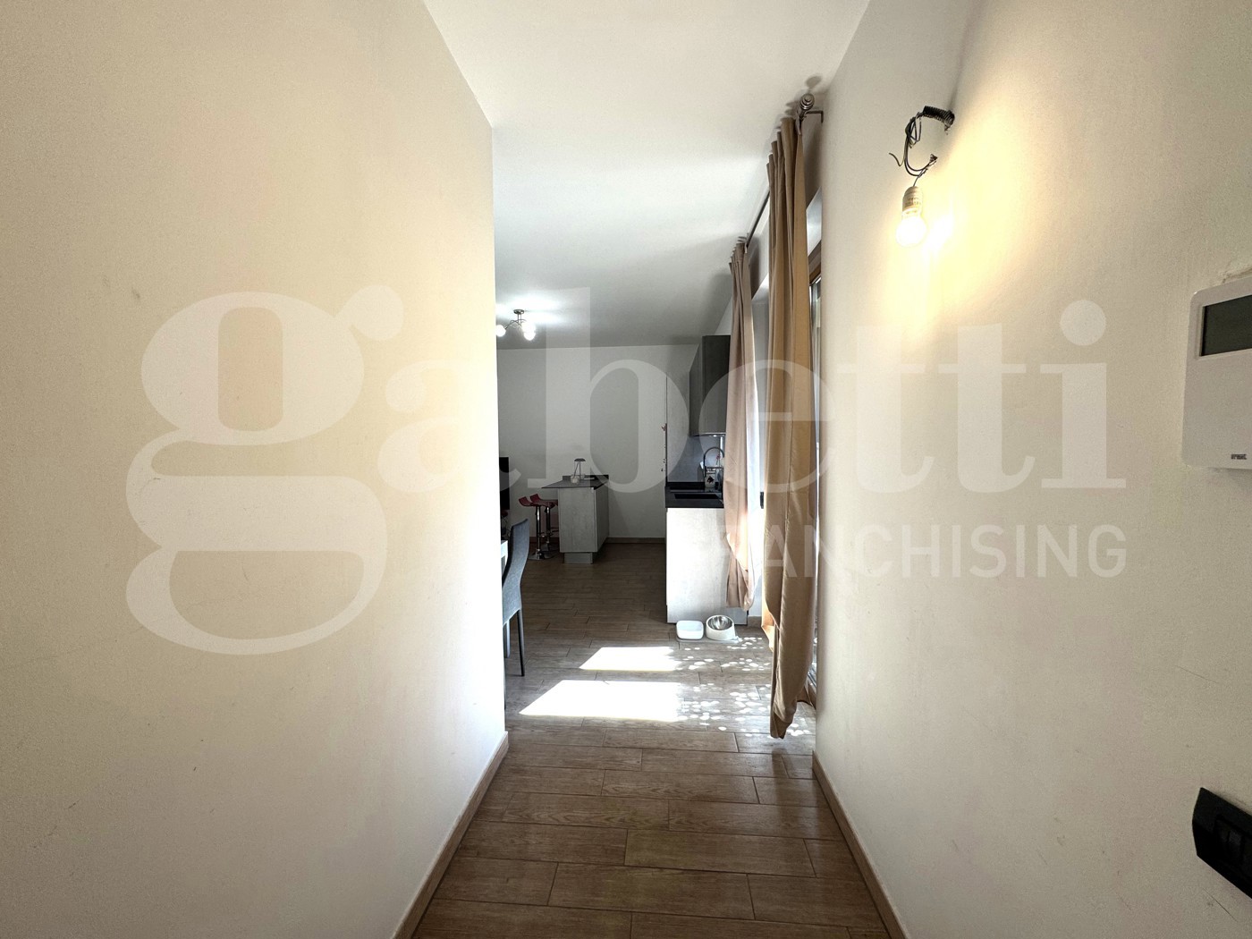 Entriamo nellappartamento e troviamo un ingresso che ci porta alla comoda zona giorno siamo accolti dal Soggiorno con lAngolo Cottura e il balconcino di servizio, disimpegno, Camera da letto, Bagno con doccia e un secondo terrazzo.