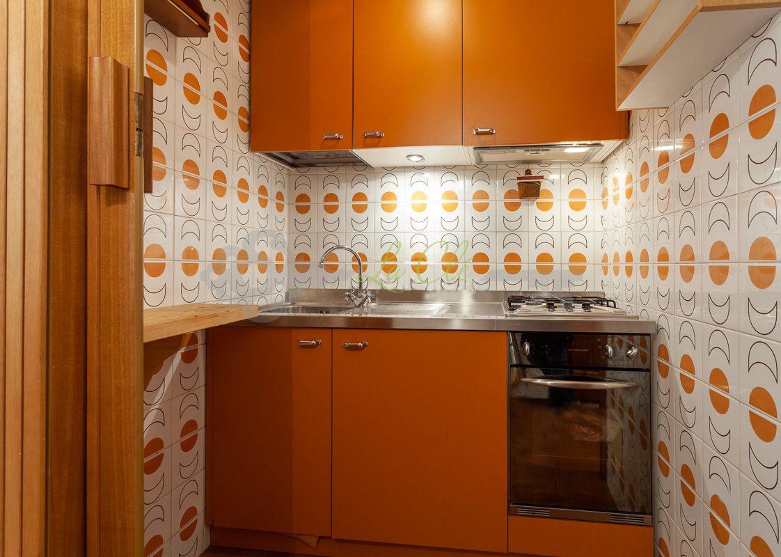 L'appartamento, posto al piano terra, in condominio, è così composto: ingresso su soggiorno con zona pranzo, accesso al giardino; angolo cottura a vista (dotato di frigo piccolo con ghiacciaia, piano cottura 4 fuochi gas). La zona notte è composta da 1 camera matrimoniale, 1 bagno finestrato con vasca, 1 camera doppia con letto a castello.