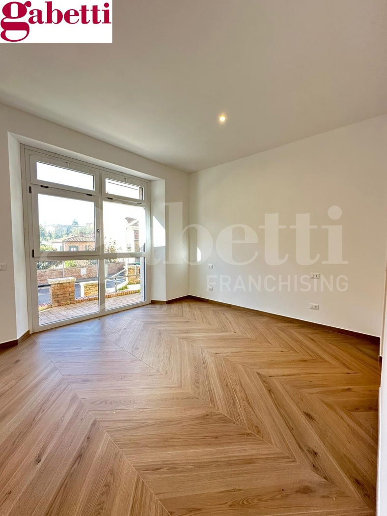 Rif. S2589 - Siena Ravacciano - Resede classe A no gas - In quartiere residenziale a pochi passi dal centro storico, appartamento completamente ristrutturato di 73 mq catastali al piano terra rialzato con ingresso indipendente da resede esclusivo di circa 23 mq. Internamente composto da ampia zona giorno open space con angolo cottura, camera matrimoniale con cabina armadio, bagno e ripostiglio/lavanderia.